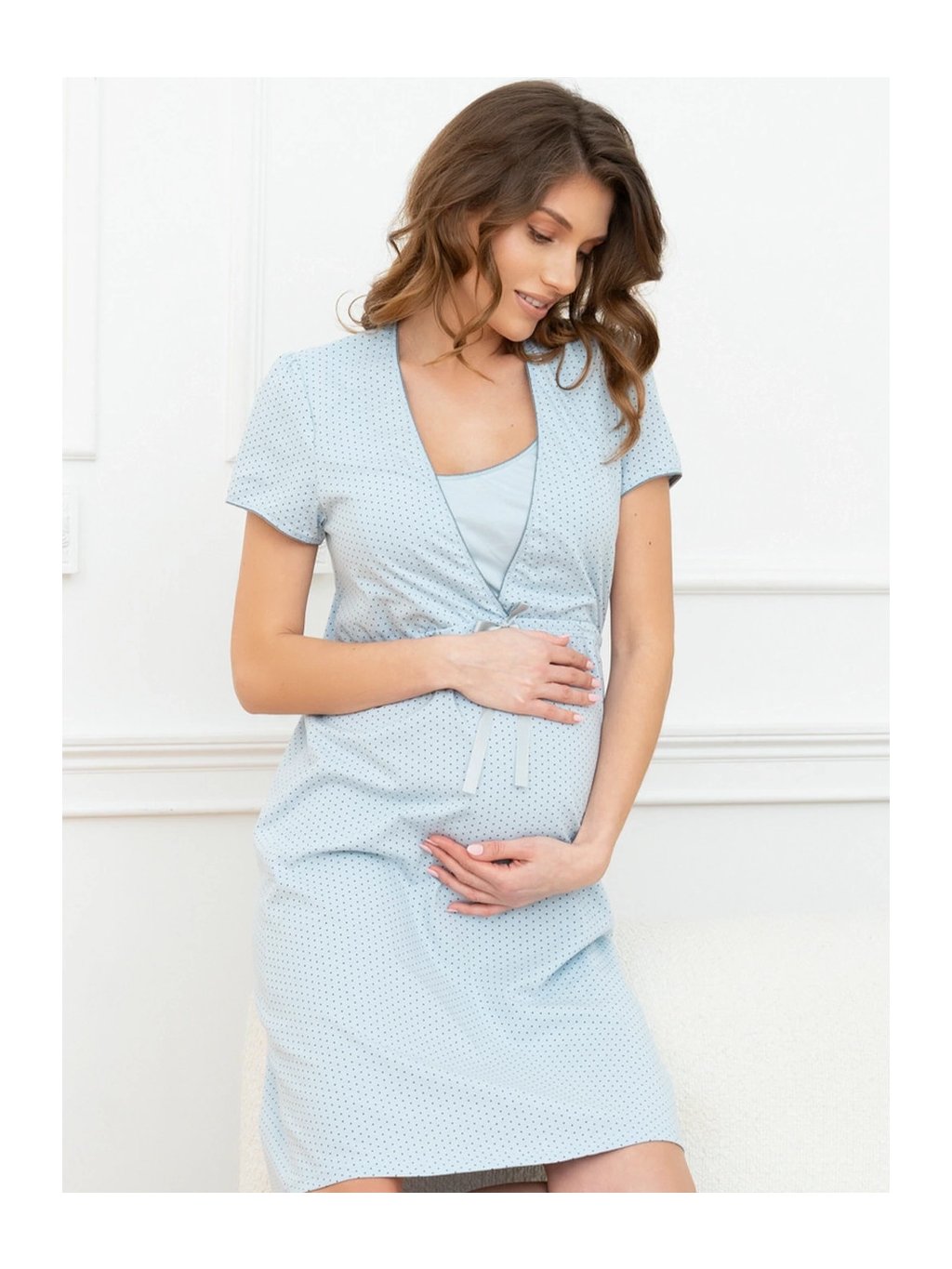 Těhotenská a kojící košile 3v1 světle modrá s drobnými puntíky bavlněná