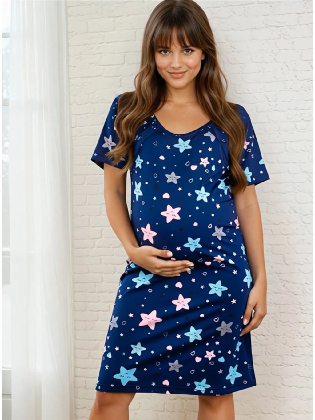 Těhotenská a kojicí noční košile ve hvězdném designu