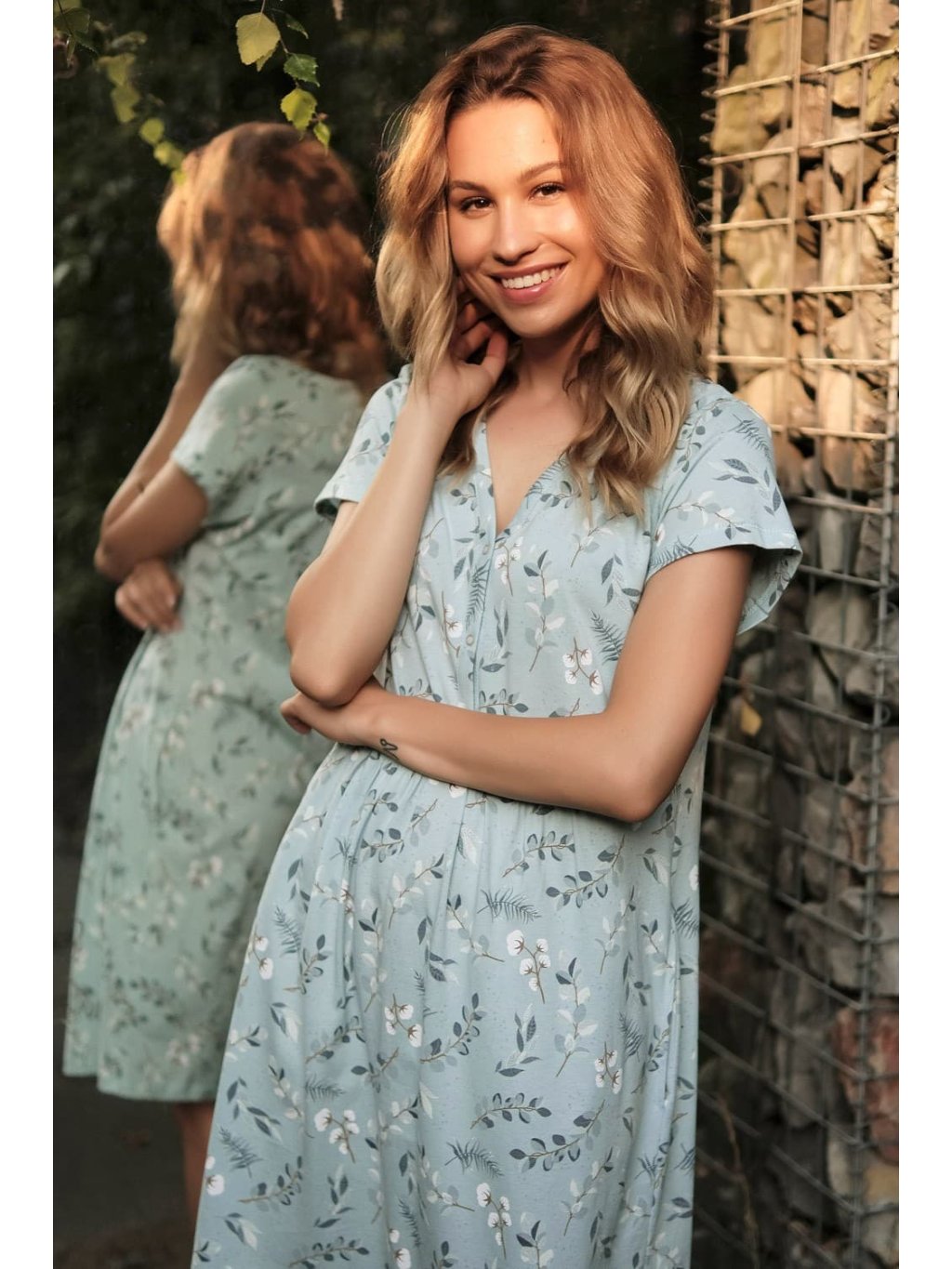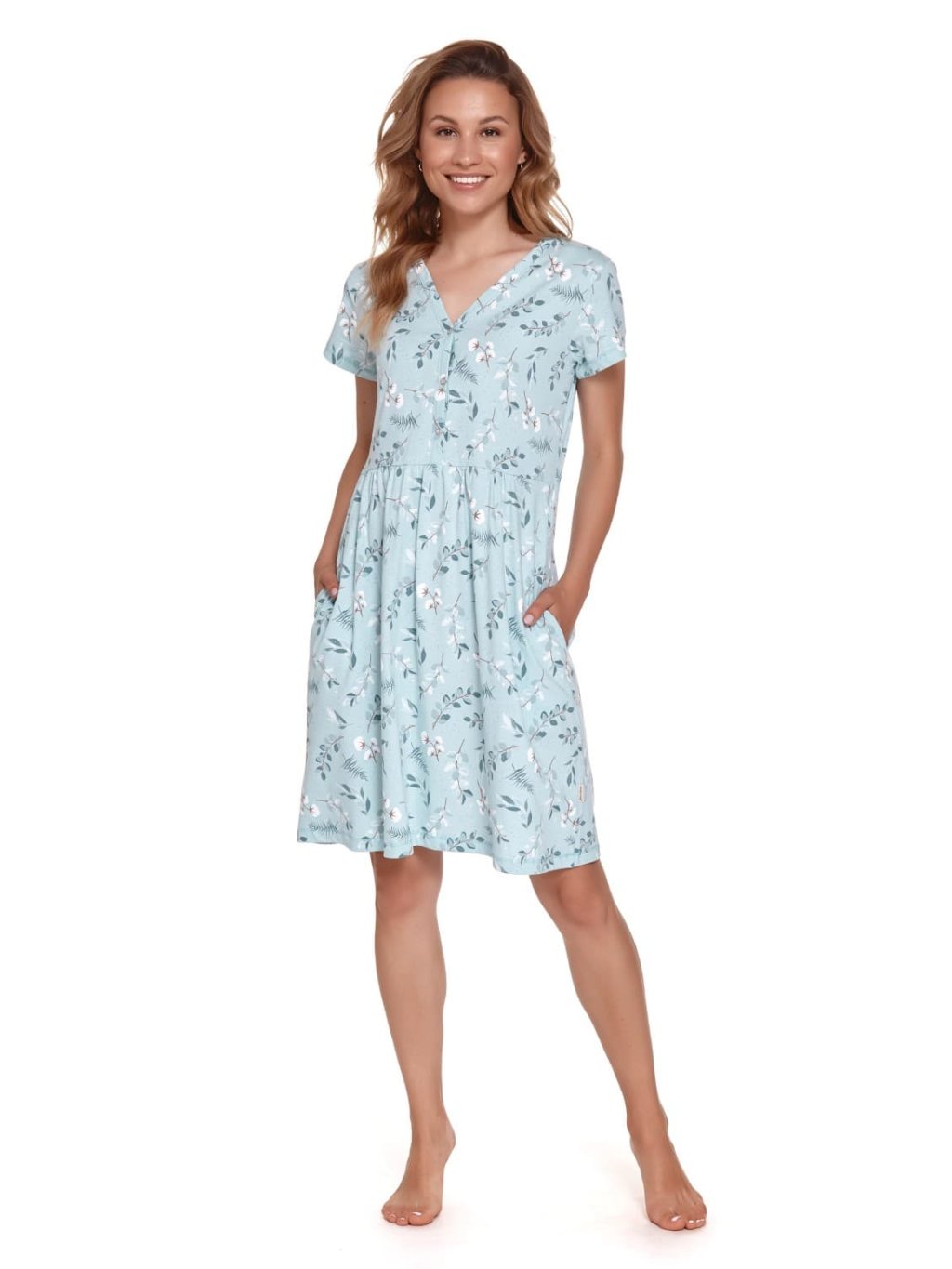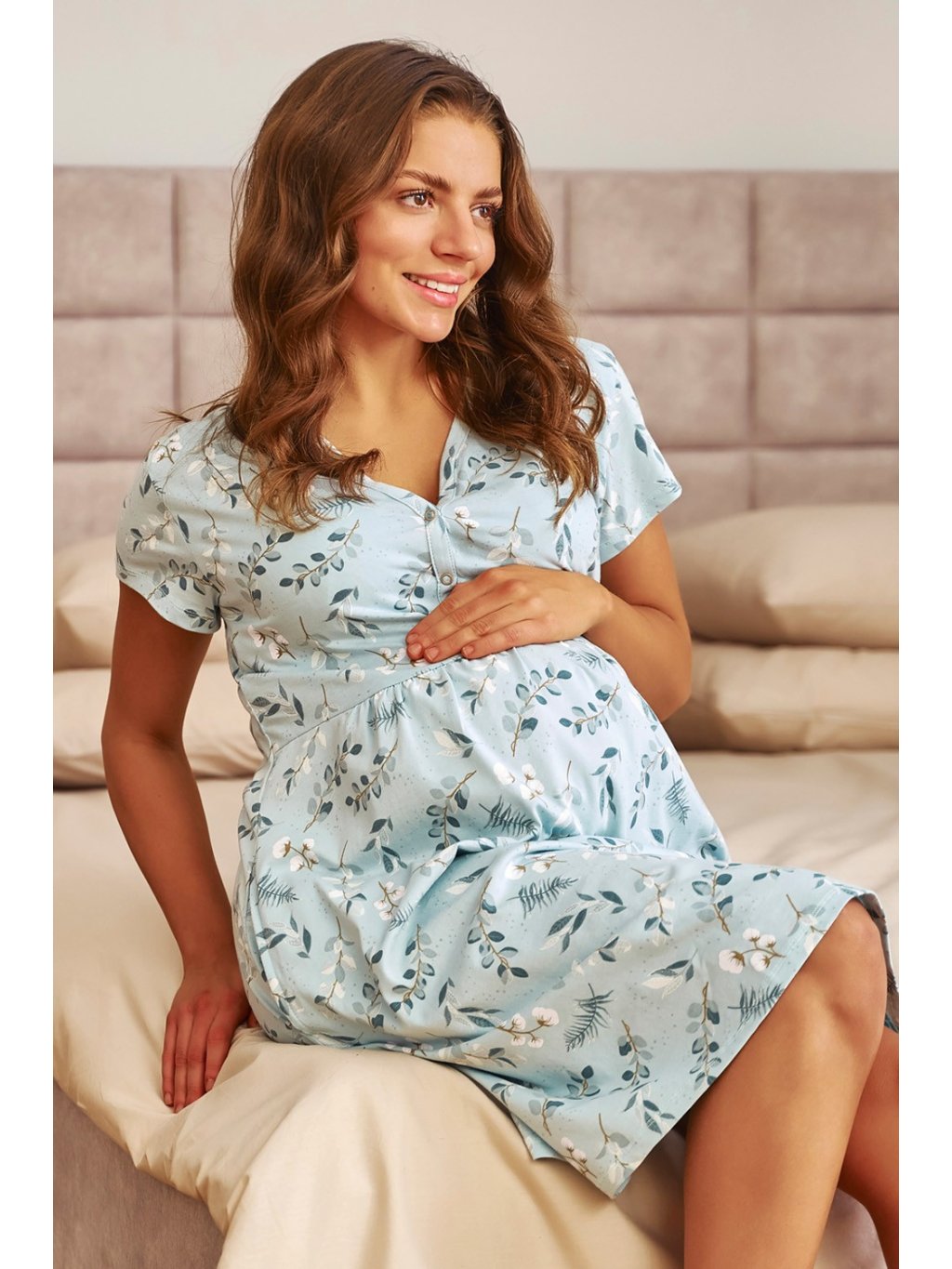 Těhotenská a kojicí noční košile – světle modrá s kvítky, bavlna