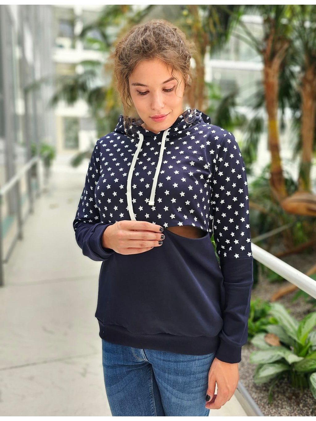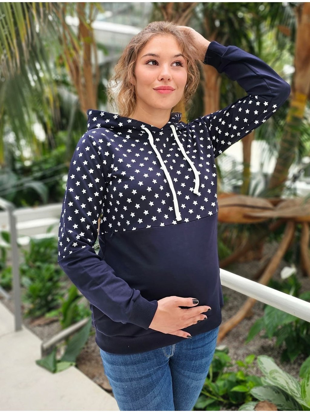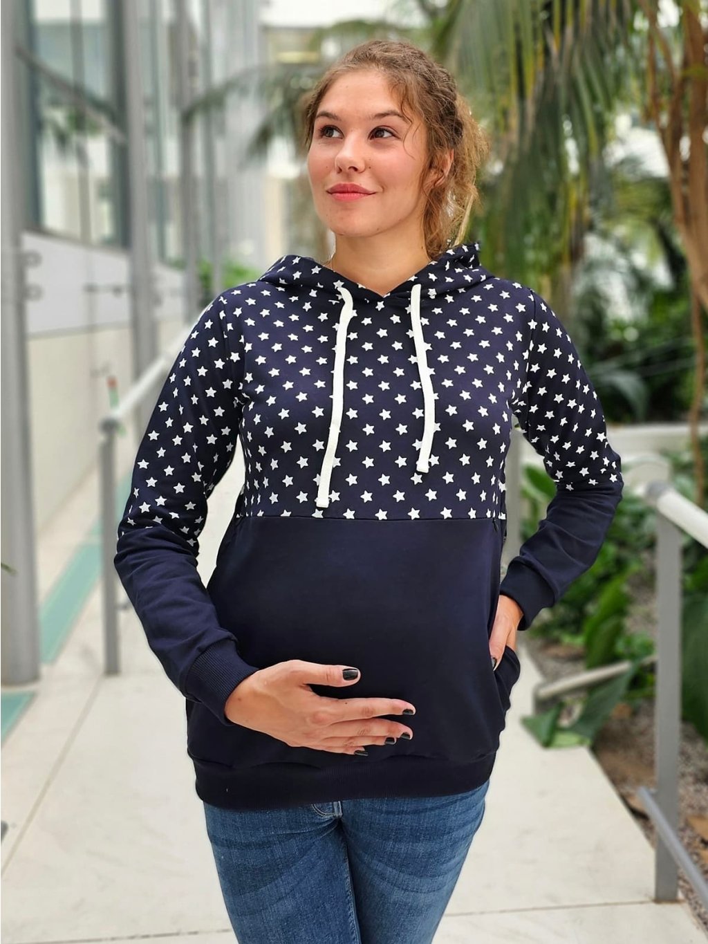 Těhotenská a kojící mikina 3v1 Alessia Star – tmavě modrá s hvězdičkami, bavlna