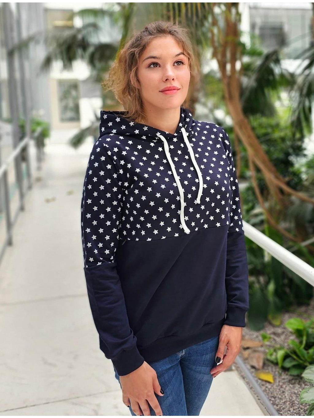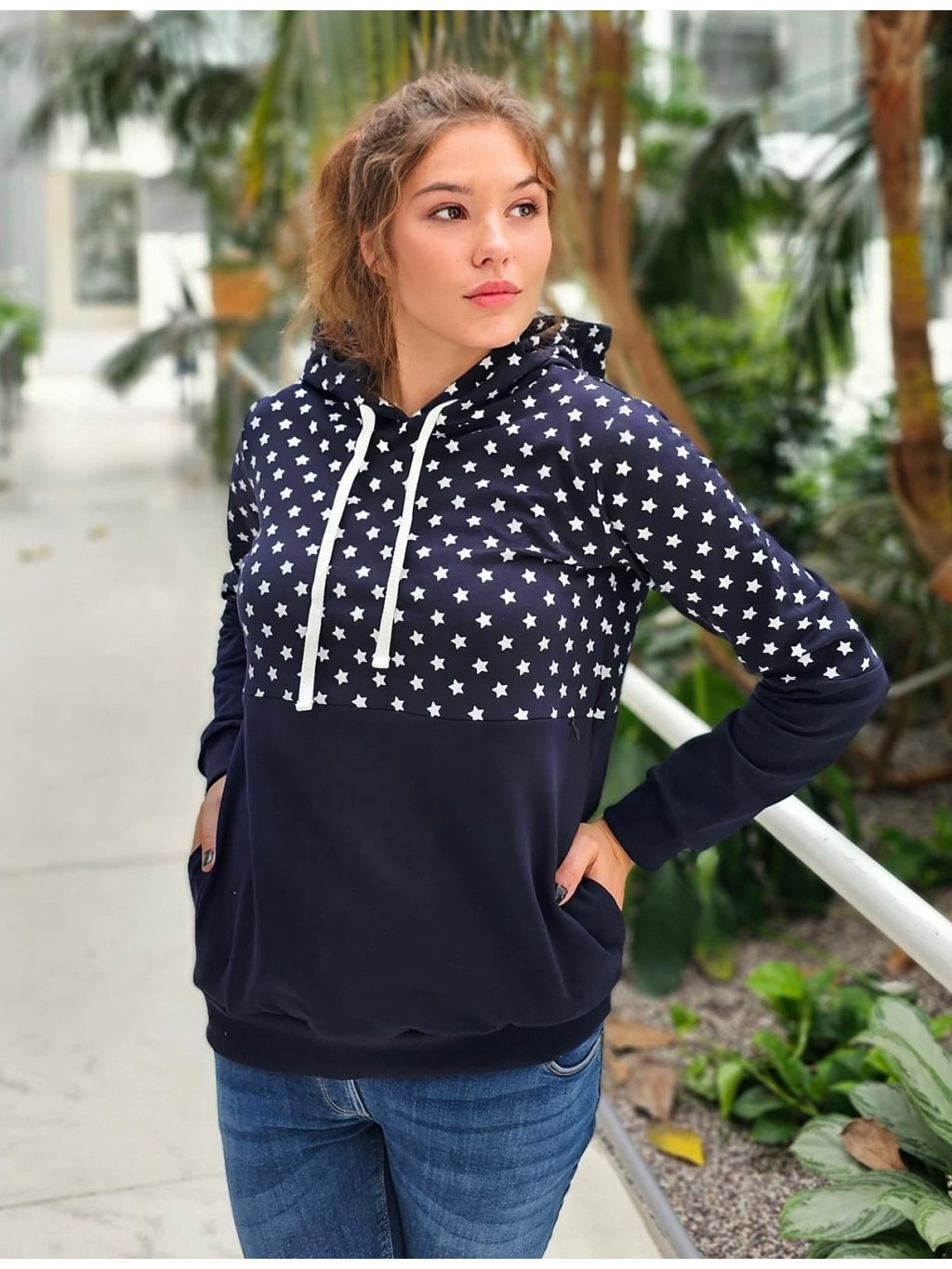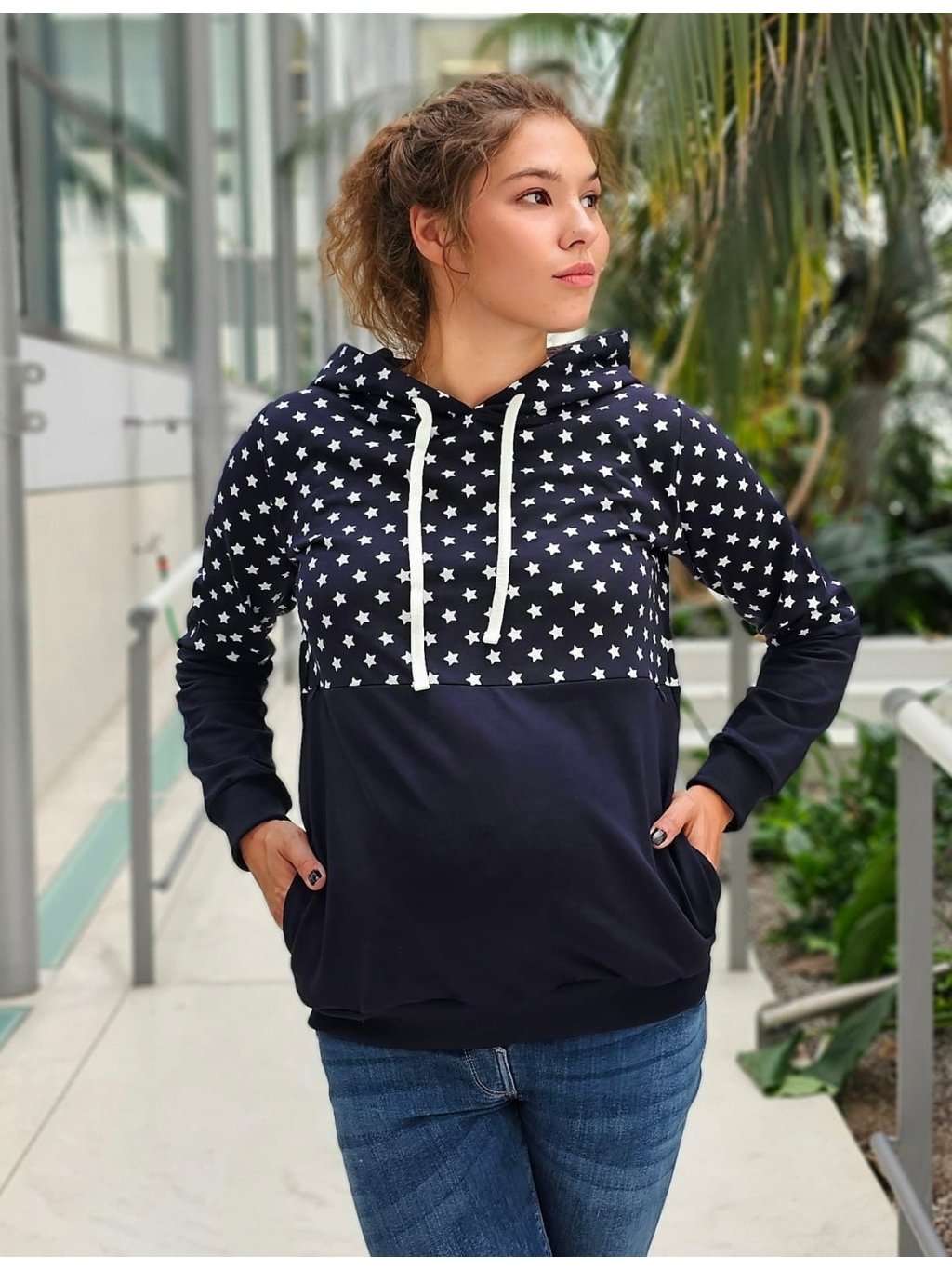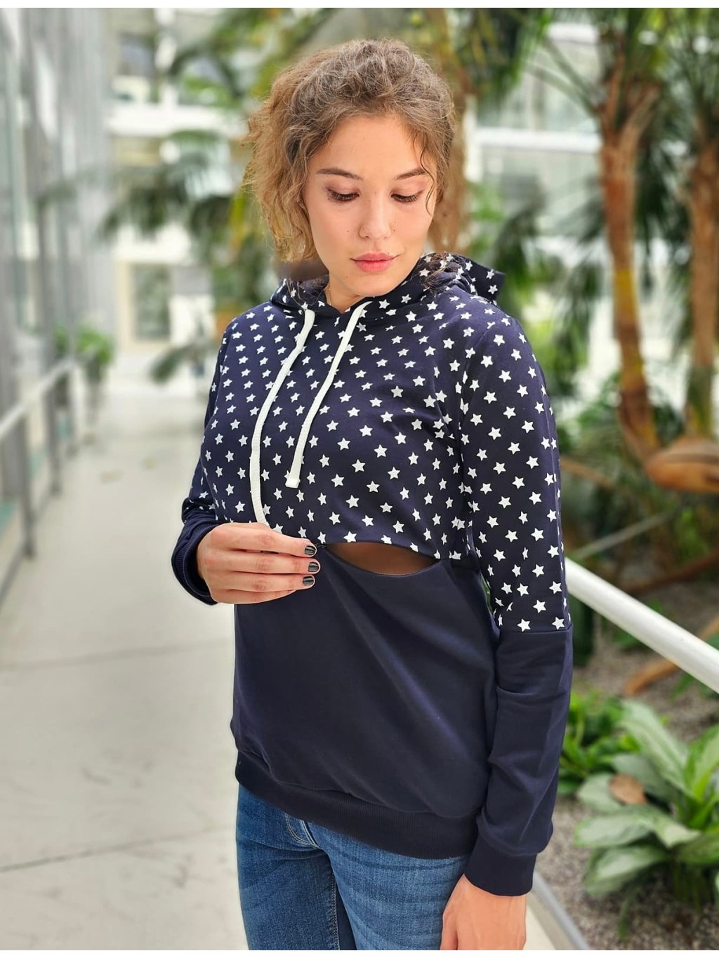 Těhotenská a kojící mikina 3v1 Alessia Star – tmavě modrá s hvězdičkami, bavlna