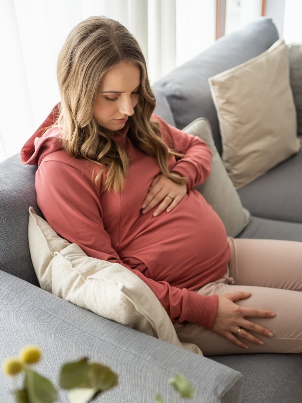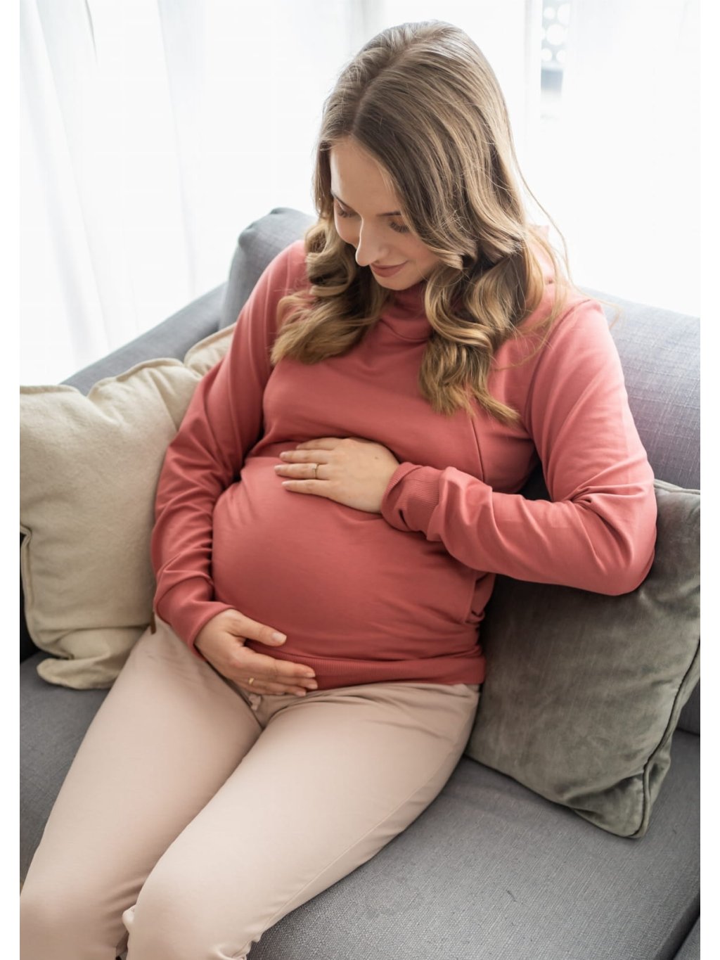 Pohodlná těhotenská mikina 3v1 ve starorůžové barvě Dusty Cedar je navržena tak, aby se přizpůsobila vašemu tělu i potřebám v každé fázi mateřství. Během těhotenství se díky promyšlenému střihu a pružnému bavlněnému úpletu krásně přizpůsobí rostoucímu bříšku. Po narození miminka se z ní stává praktická kojicí mikina – skryté zipy umožňují diskrétní kojení kdykoliv a kdekoliv, bez nutnosti složitého odhalování.