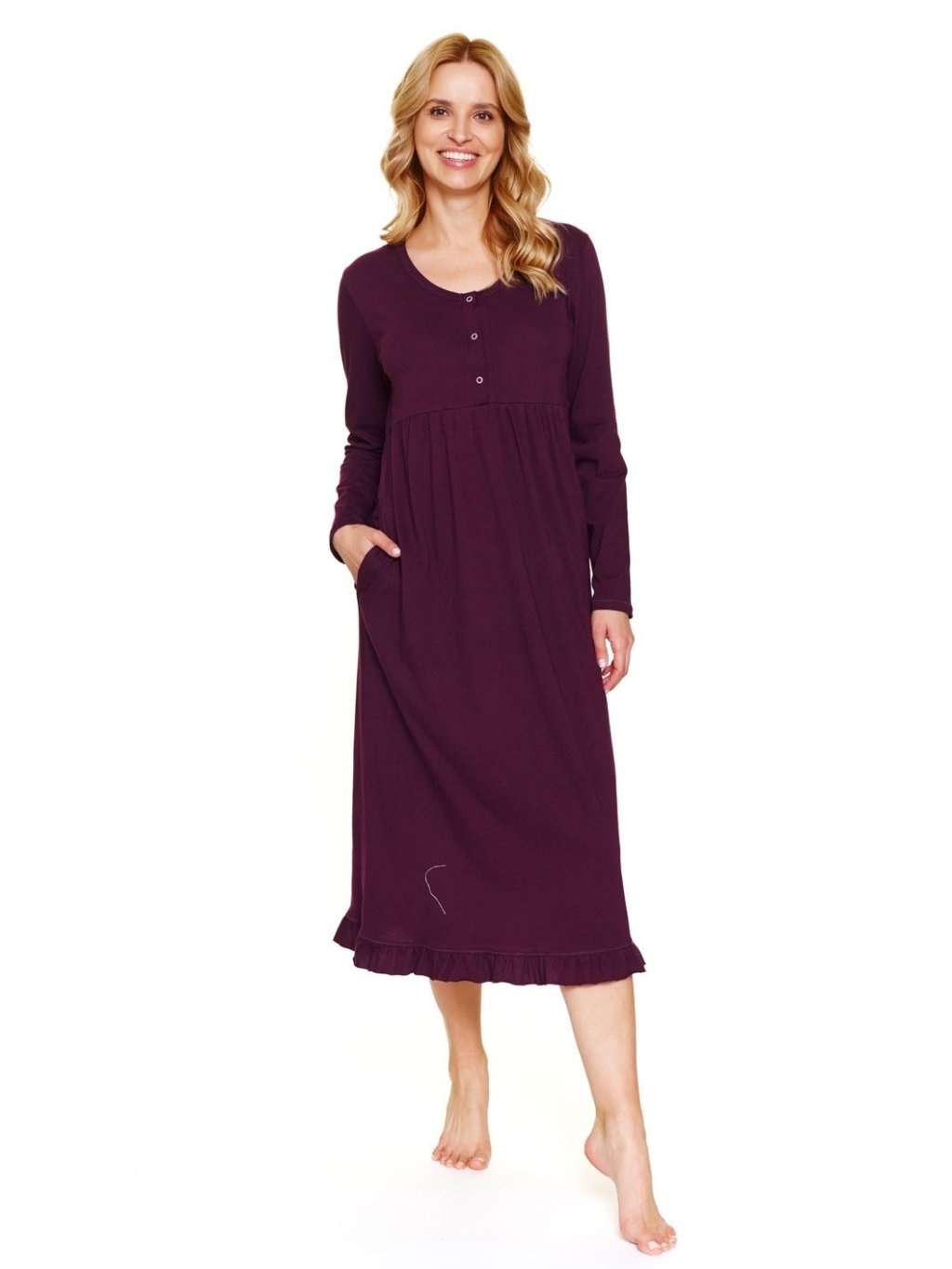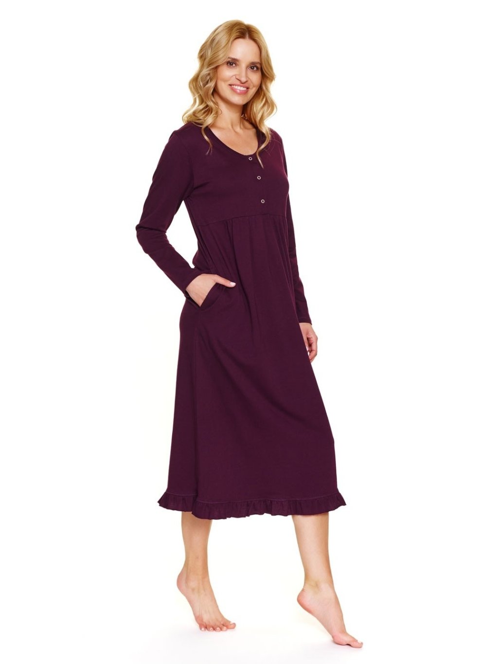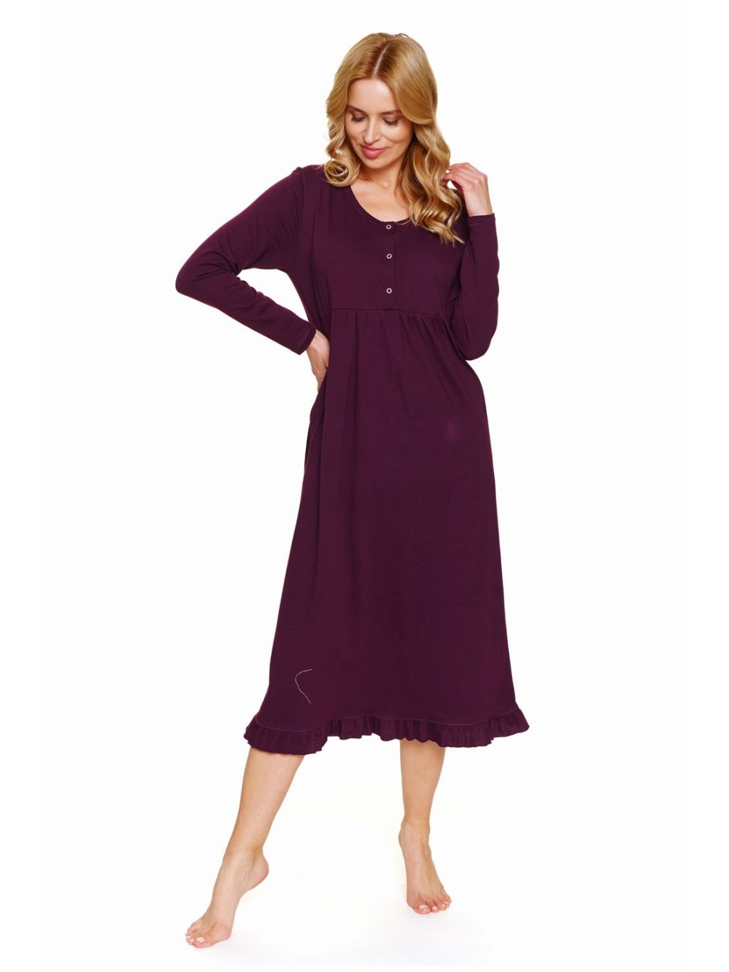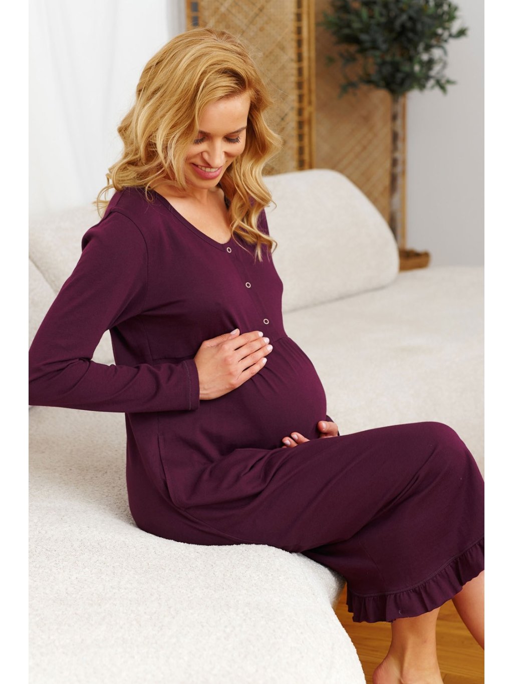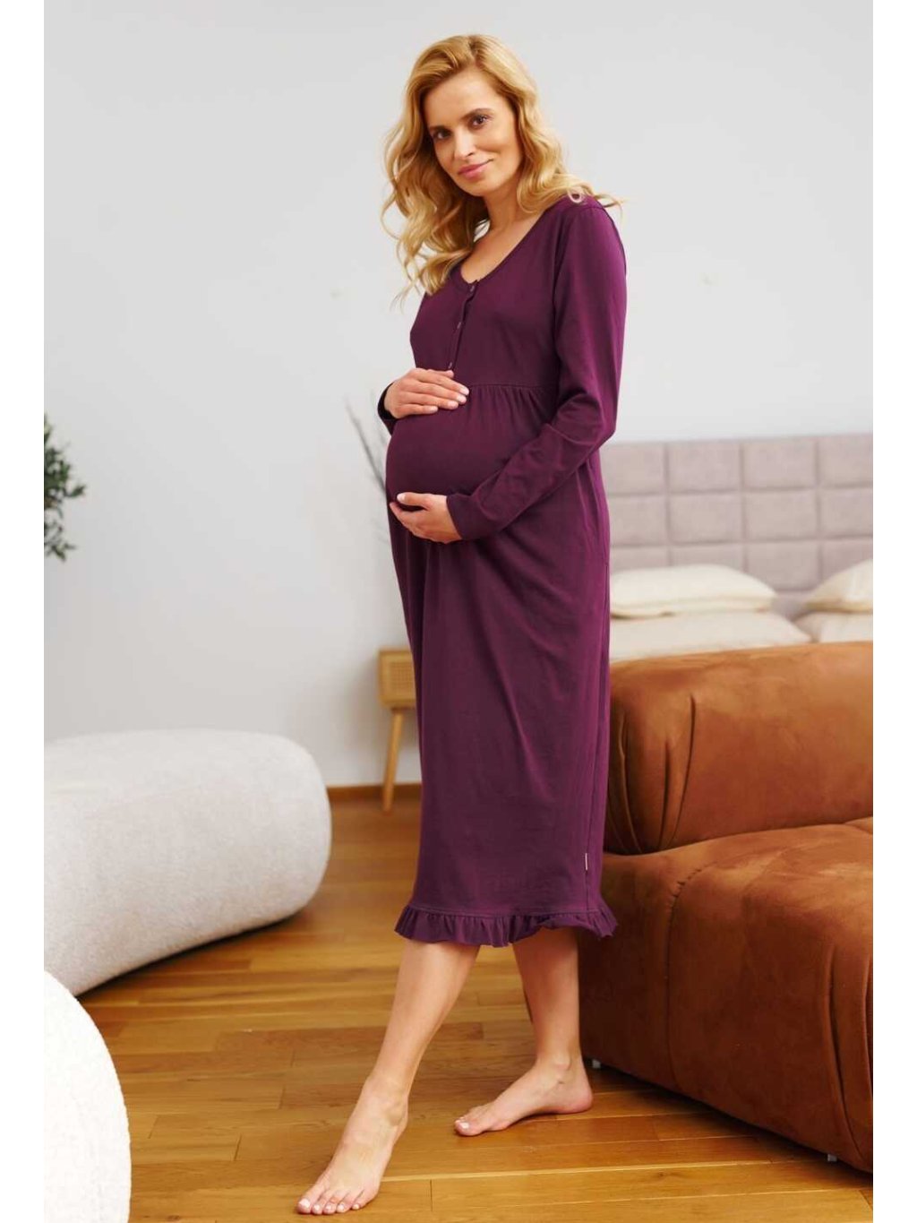 Těhotenská a kojicí noční košile – dlouhá, švestková, bavlna
