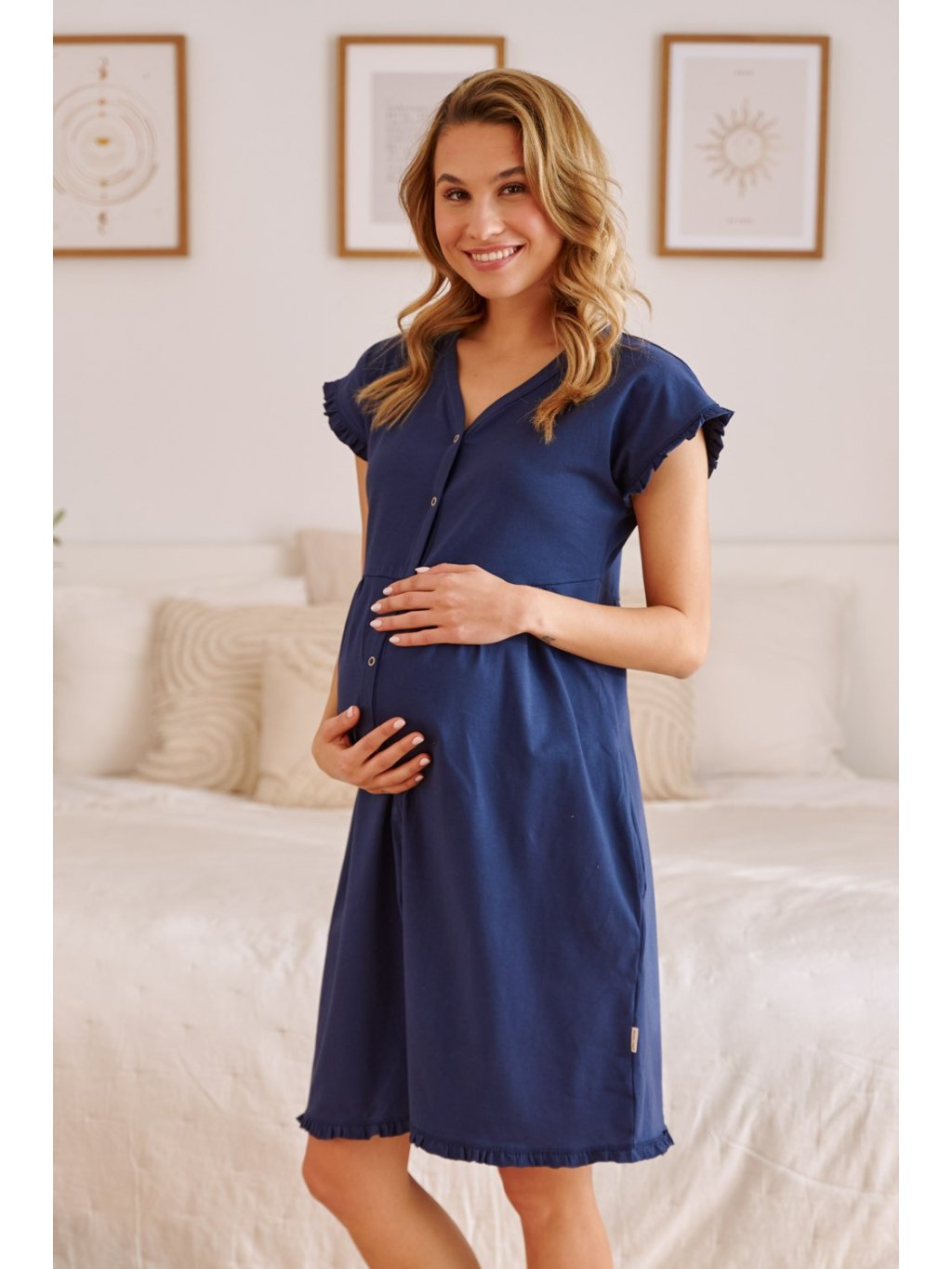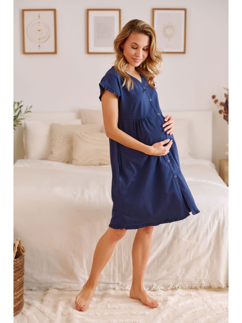 Těhotenská a kojicí noční košile – námořnická modrá, organická bavlna