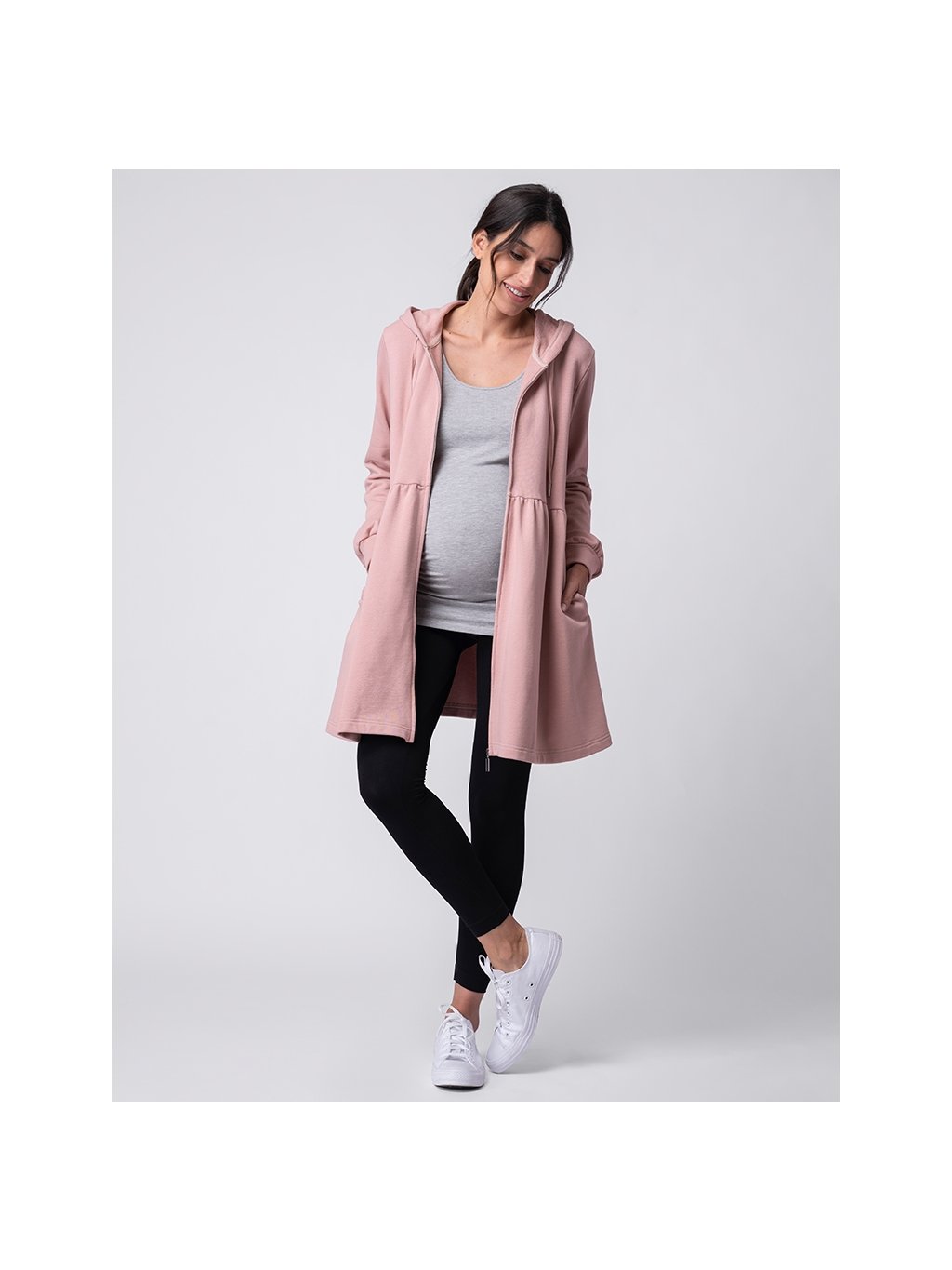 Těhotenská a nosící mikinová tunika 3v1 Shelby pudrově růžová
