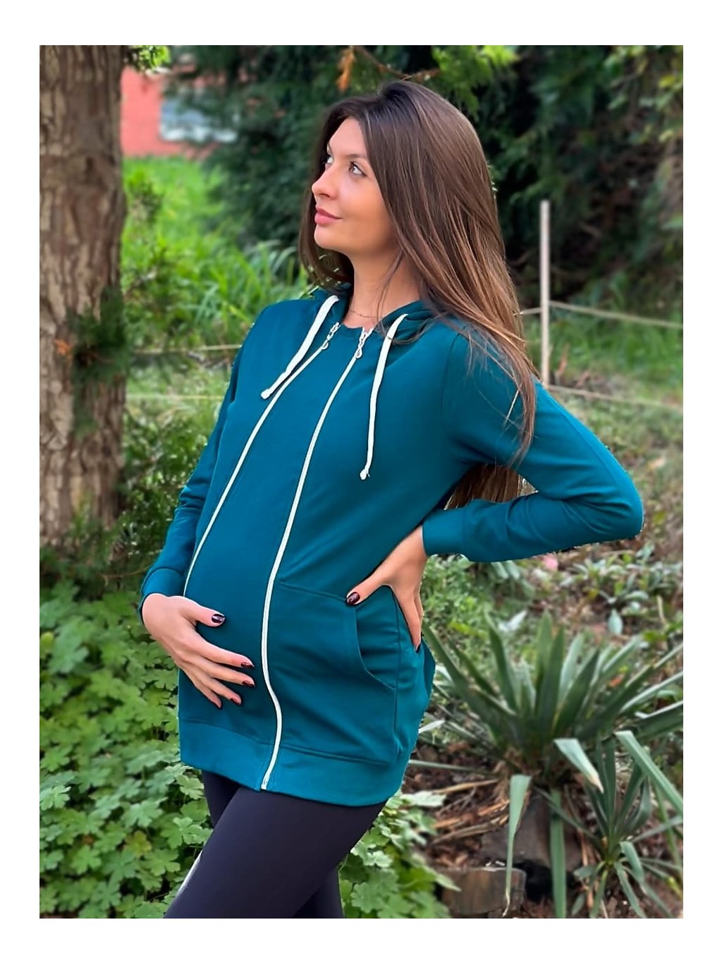 Těhotenská mikina 2v1 Rafie smaragdová petrolej bavlněná