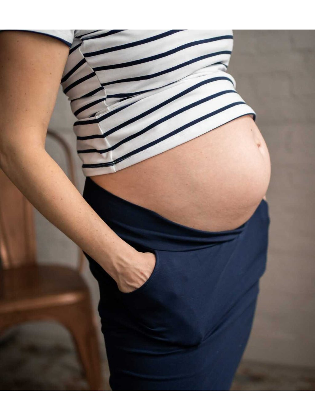 Těhotenská sukně s nízkým pasem Niski - modrá, bavlněná