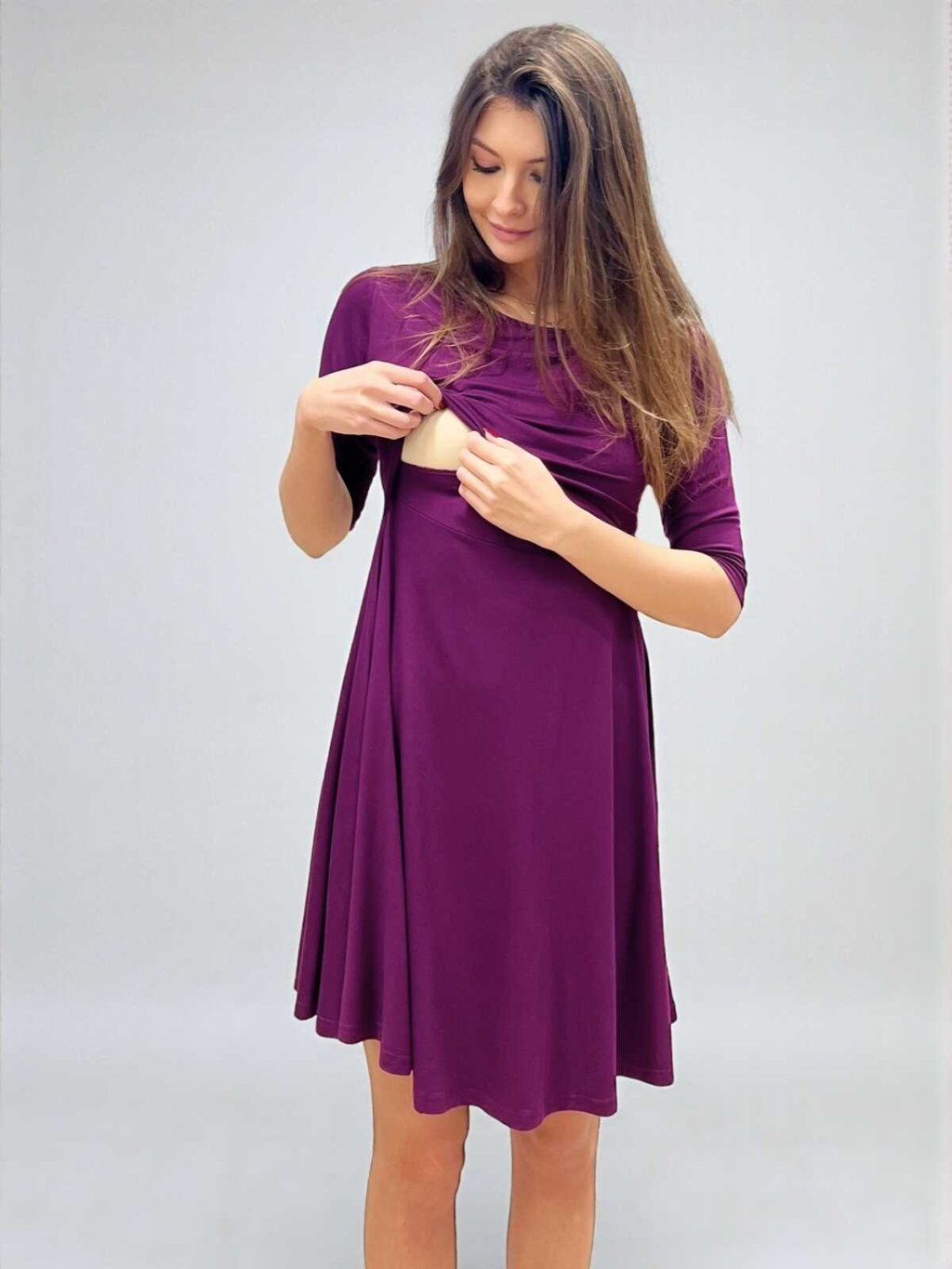 Těhotenské a kojící šaty 3v1 Claire - fialové, 3/4 rukáv
