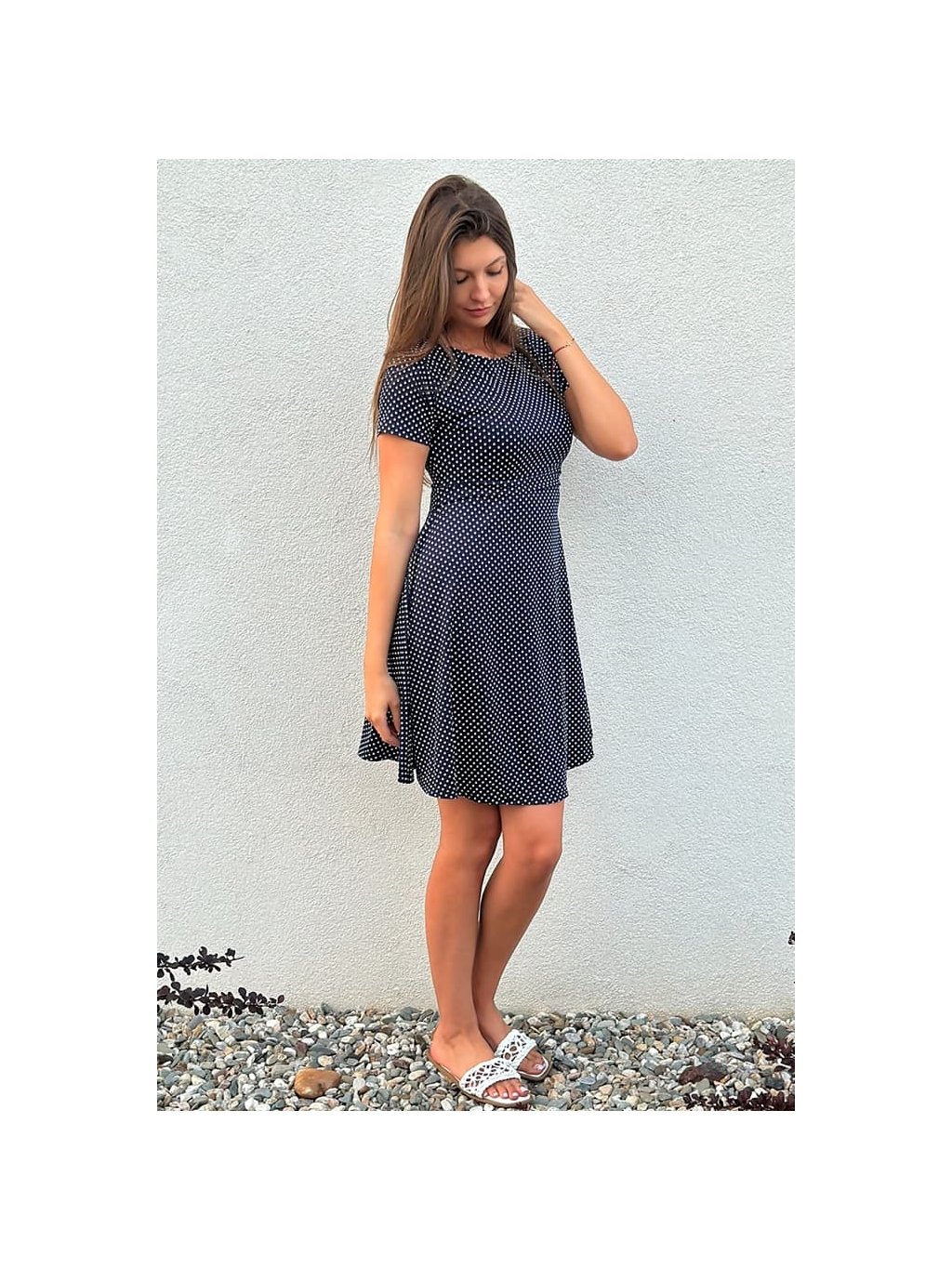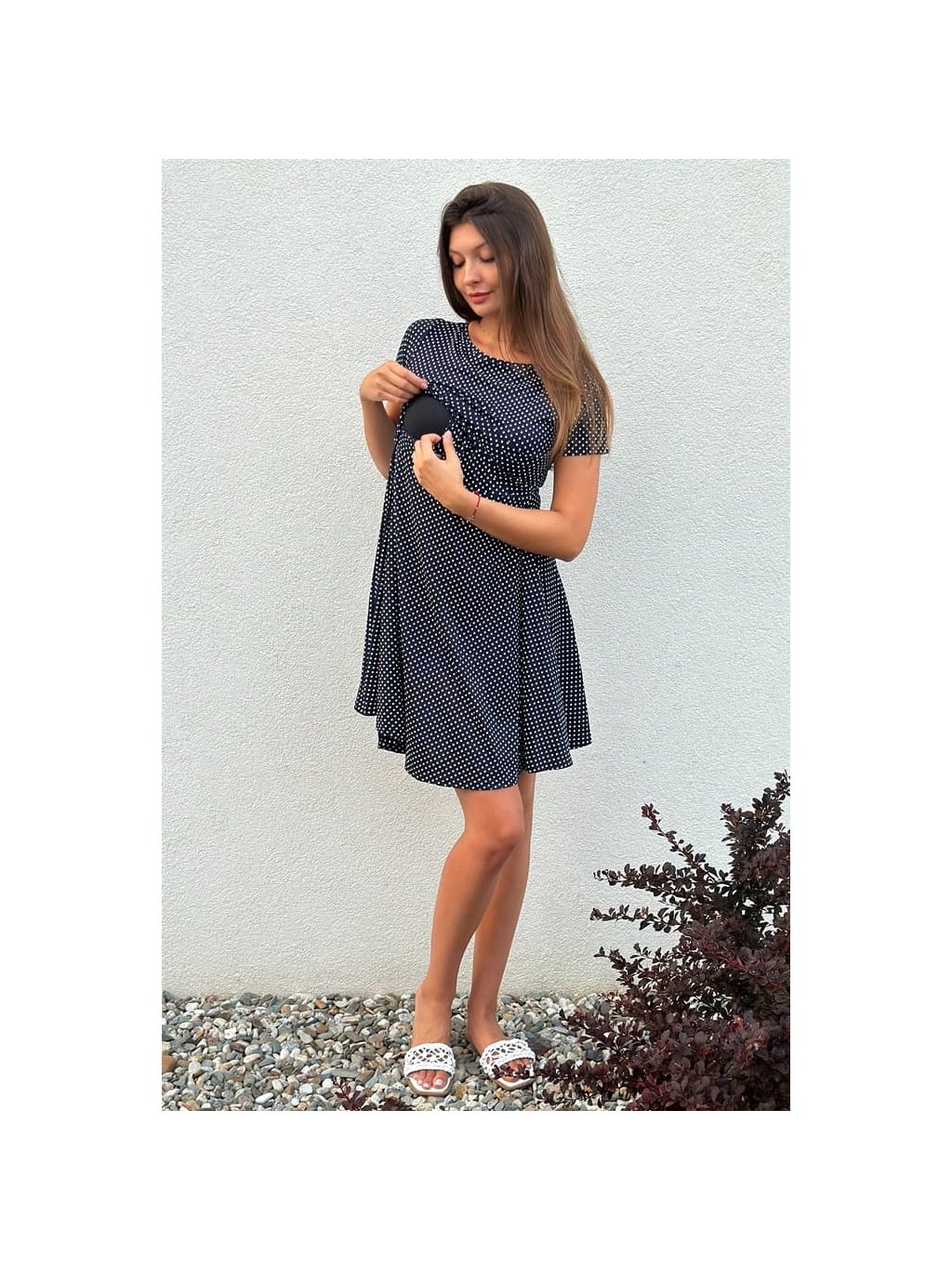 Těhotenské a kojící šaty 3v1 Claire tmavě modré s puntíky
