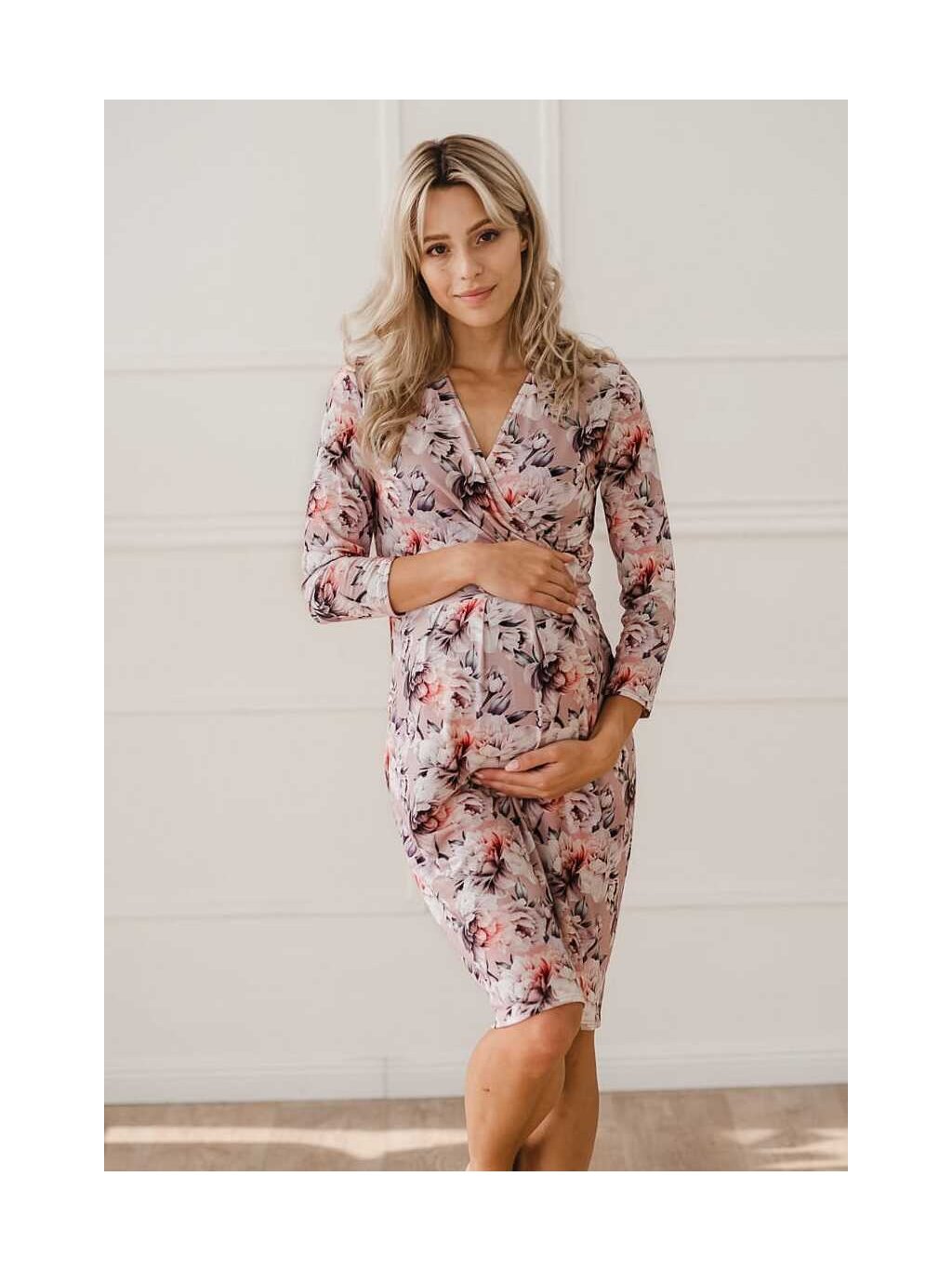 Těhotenské a kojicí šaty Grow With Me – starorůžové květinové, 3/4 rukáv