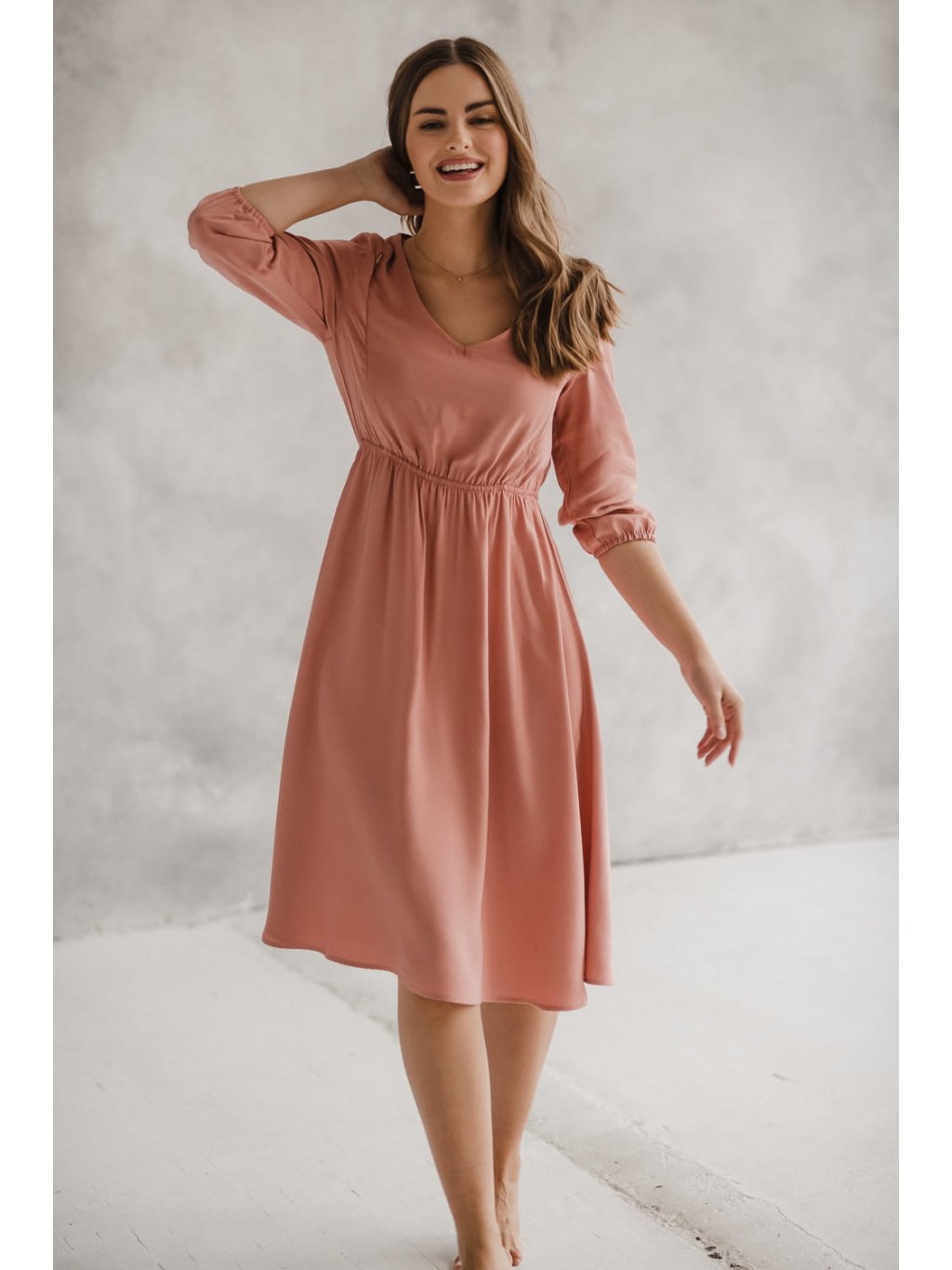 Těhotenské a kojící šaty 3v1 Lovely - růžové Herbal Rose, 3/4 rukáv