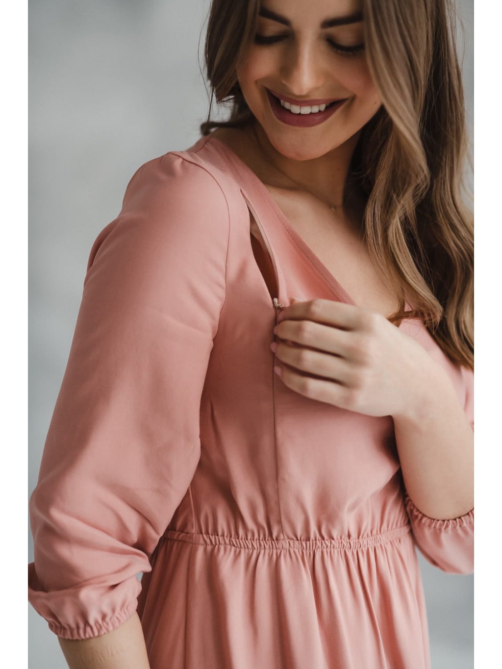 Multifunkční šaty Lovely v jemném růžovém odstínu Herbal Rose se nejprve přizpůsobí rostoucímu těhotenskému bříšku, po porodu umožní pohodlné a diskrétní kojení díky skrytým zipům a později je můžete nosit jako běžné šaty. Volnější střih, jemná gumička pod poprsím a lehká viskóza z nich dělají ideální volbu pro teplejší období i speciální příležitosti.