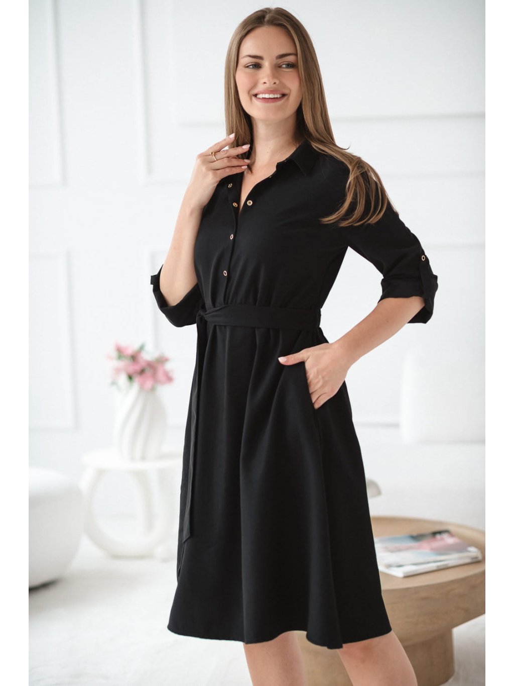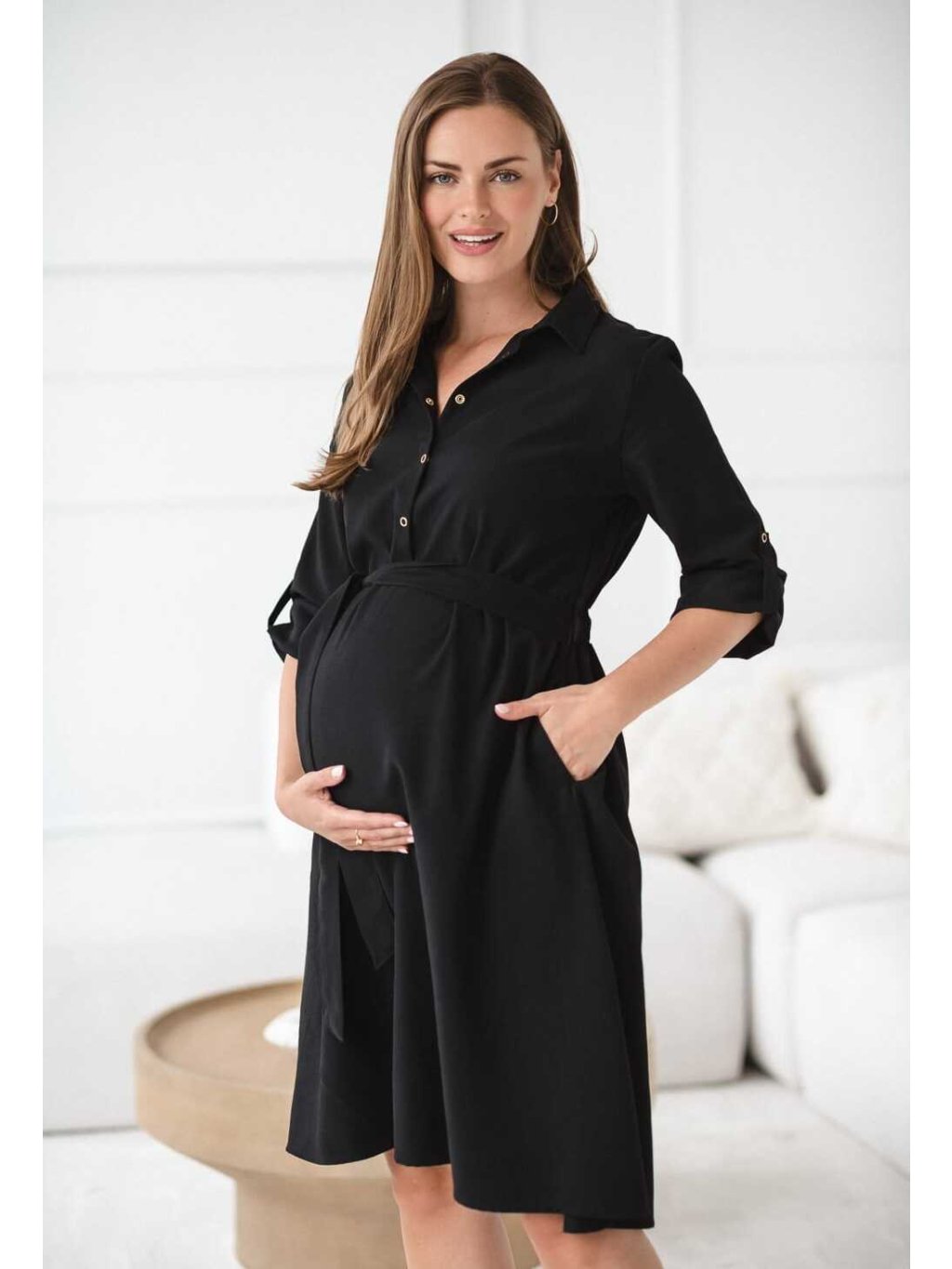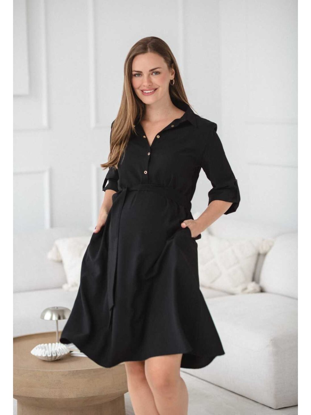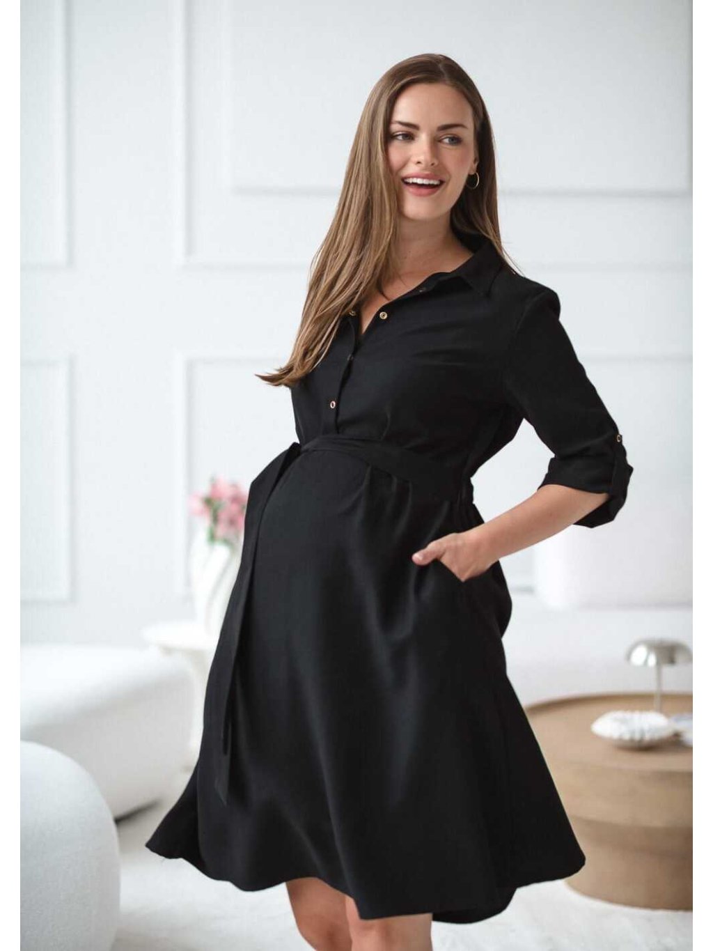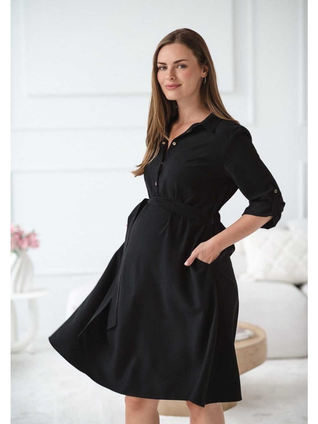 Těhotenské a kojicí šaty Amara – černé, modal, elegantní střih