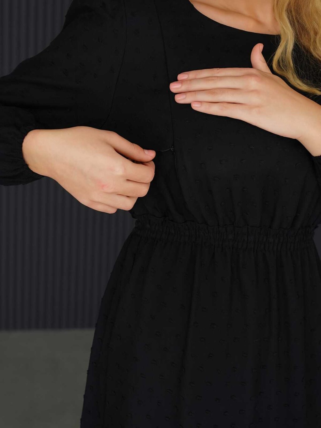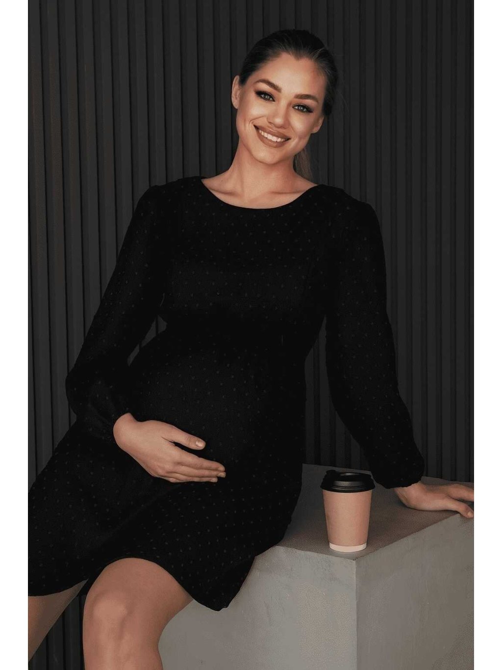 Těhotenské a kojicí šaty Fantasy 3v1 - černé s jemným vzorem, dlouhý rukáv