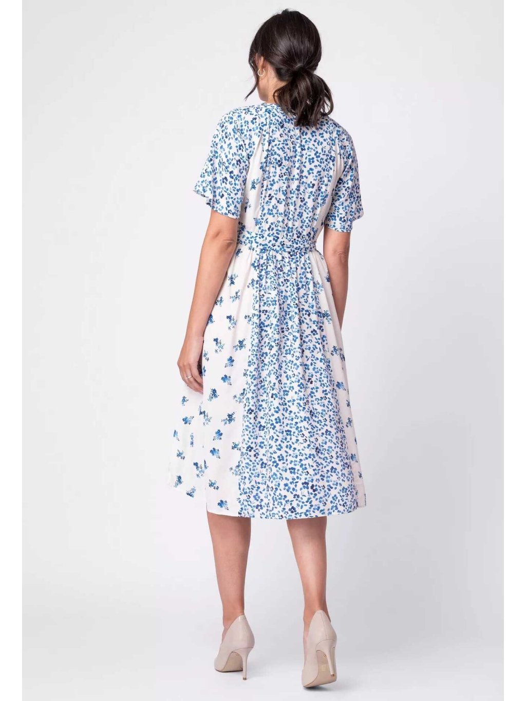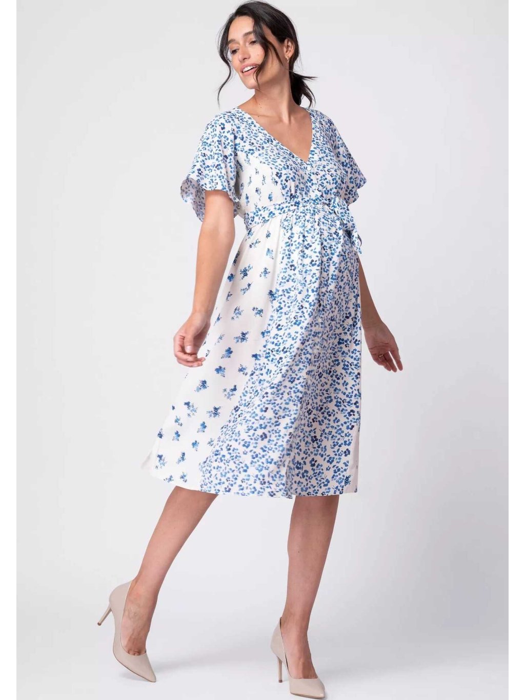 Těhotenské a kojicí šaty Ivorie 3v1 – modrobílé s kvítky