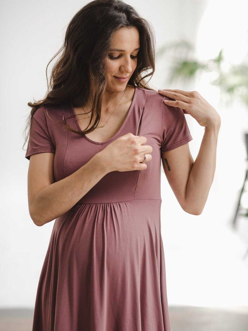 Těhotenské a kojící šaty Mommy Chic 3v1 - rose brown