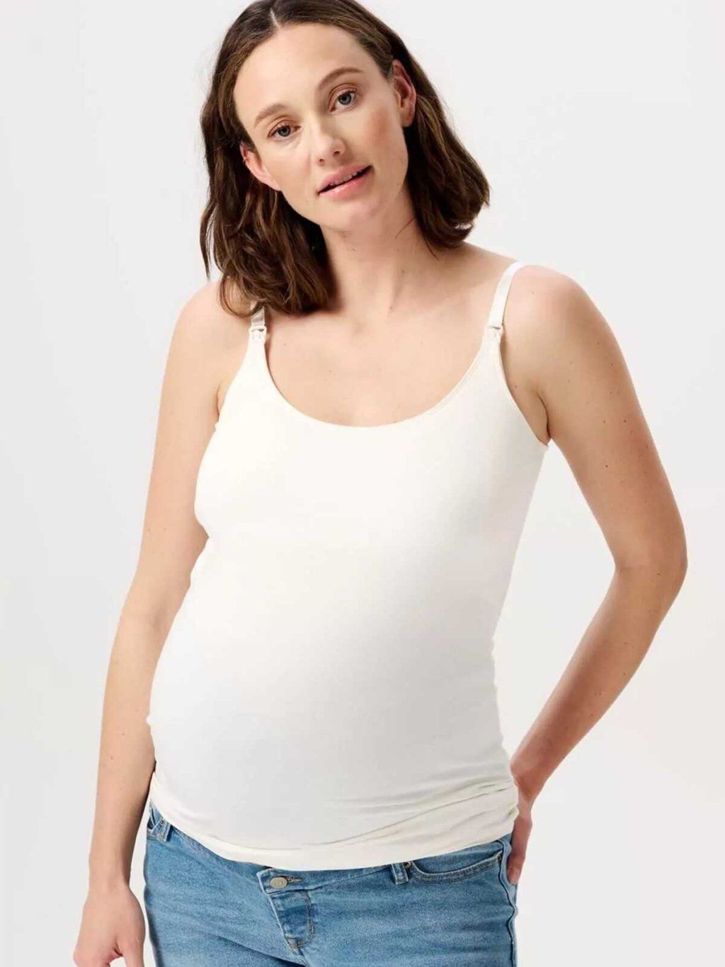 Krémově bílé tílko Ara je navržené tak, aby se během těhotenství přirozeně přizpůsobovalo měnící se postavě. Jemná a pružná organická bavlna je příjemná na těle, prodyšná a vhodná i pro celodenní nošení. Kvalitní zpracování EssENutials zajišťuje dlouhou životnost a pohodlí i při opakovaném používání.