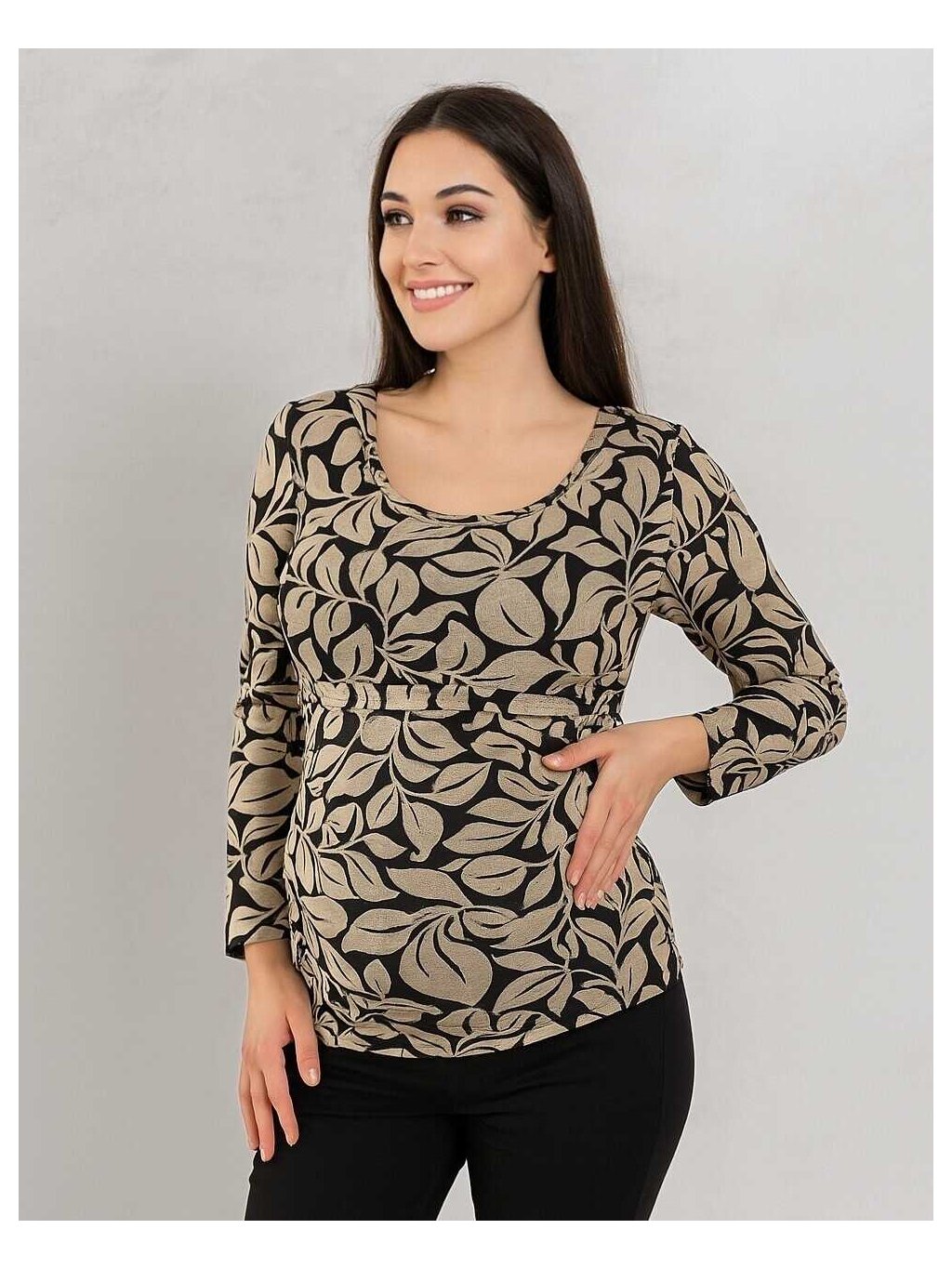 Ženské těhotenské a kojící tričko s krásným květinovým vzorem, vyrobené z jemné, velmi elastické viskózy. Díky tomu se dokonale přizpůsobí měnící...