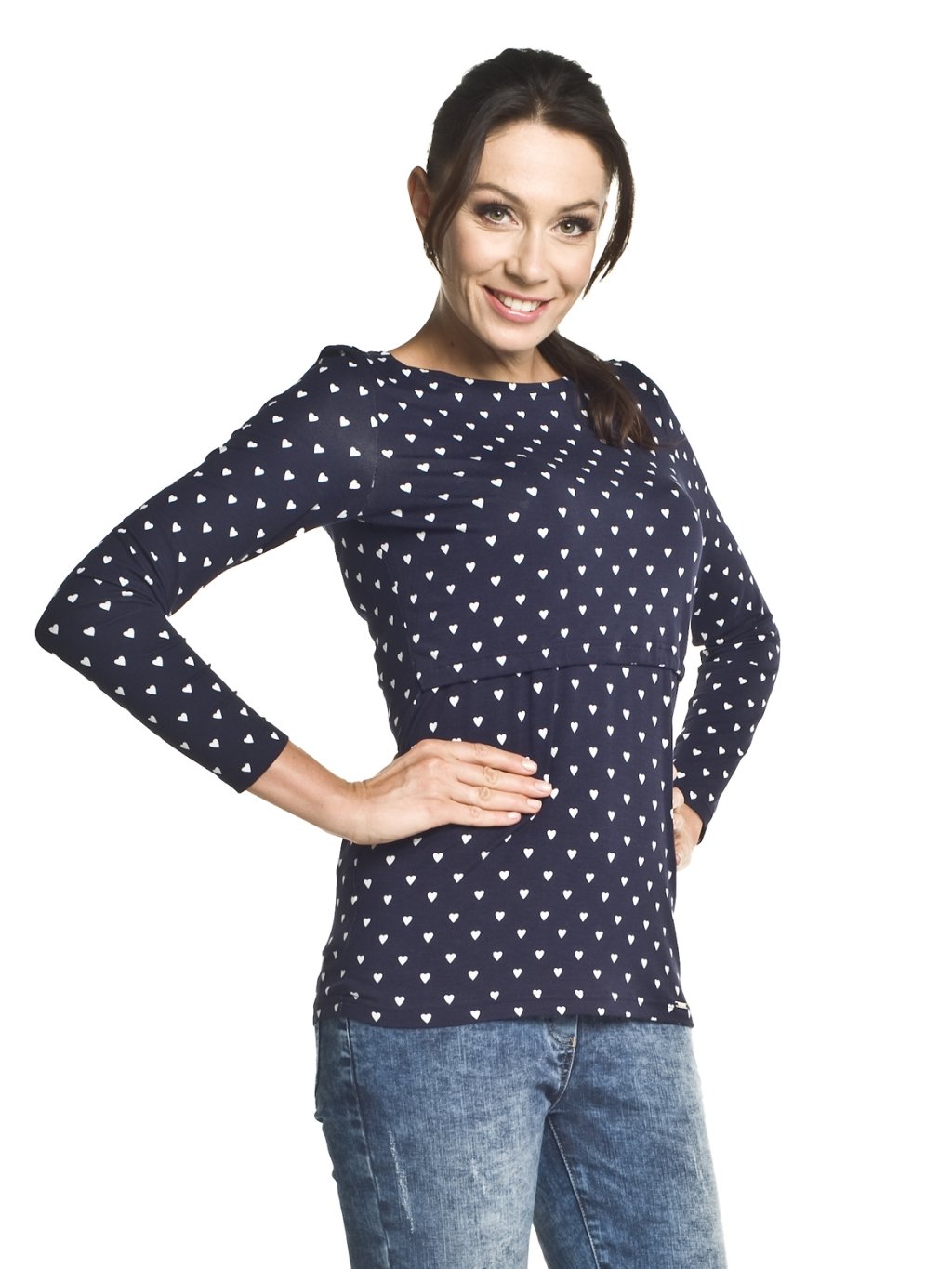 Těhotenské a kojící tričko 3v1 Gaja modré se srdíčky