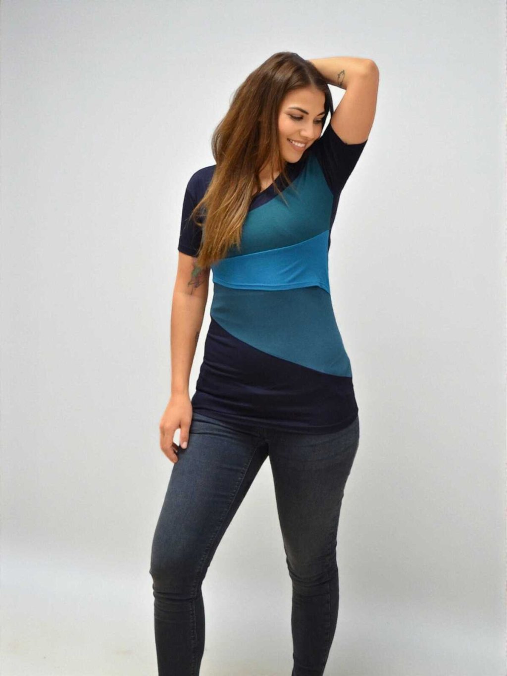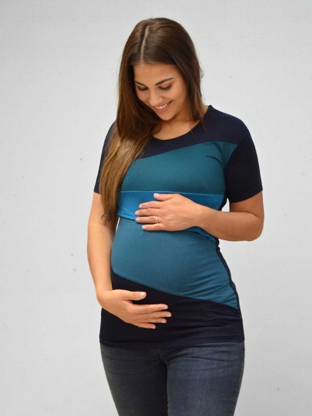 Těhotenské a kojící tričko 3v1 Grigio tyrkysovo modré