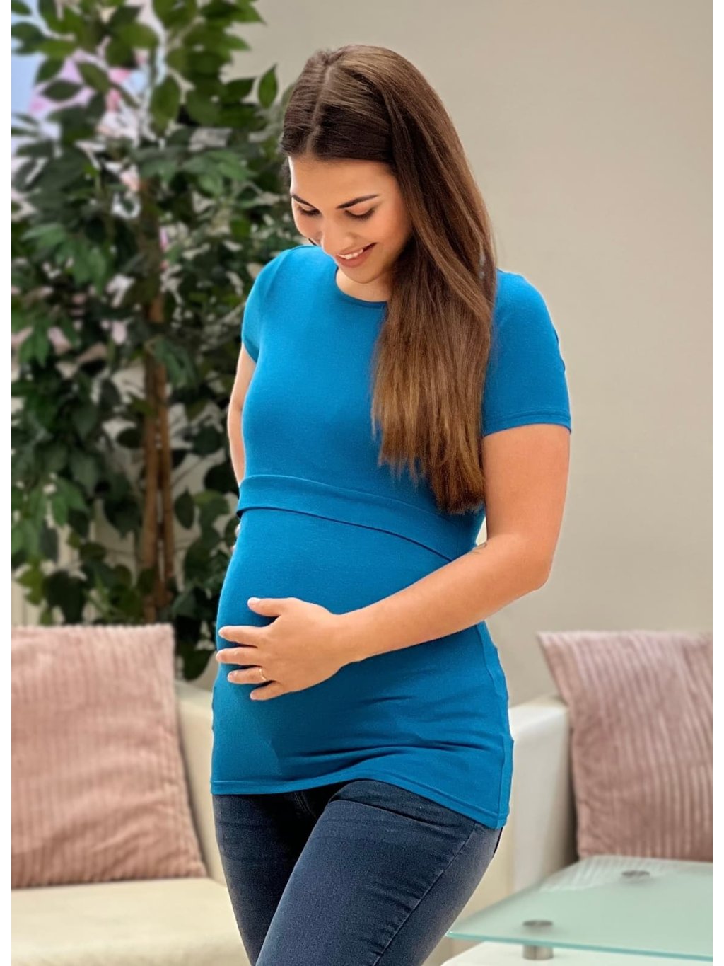 Těhotenské a kojící tričko 3v1 Mama L'amour modré nebeské