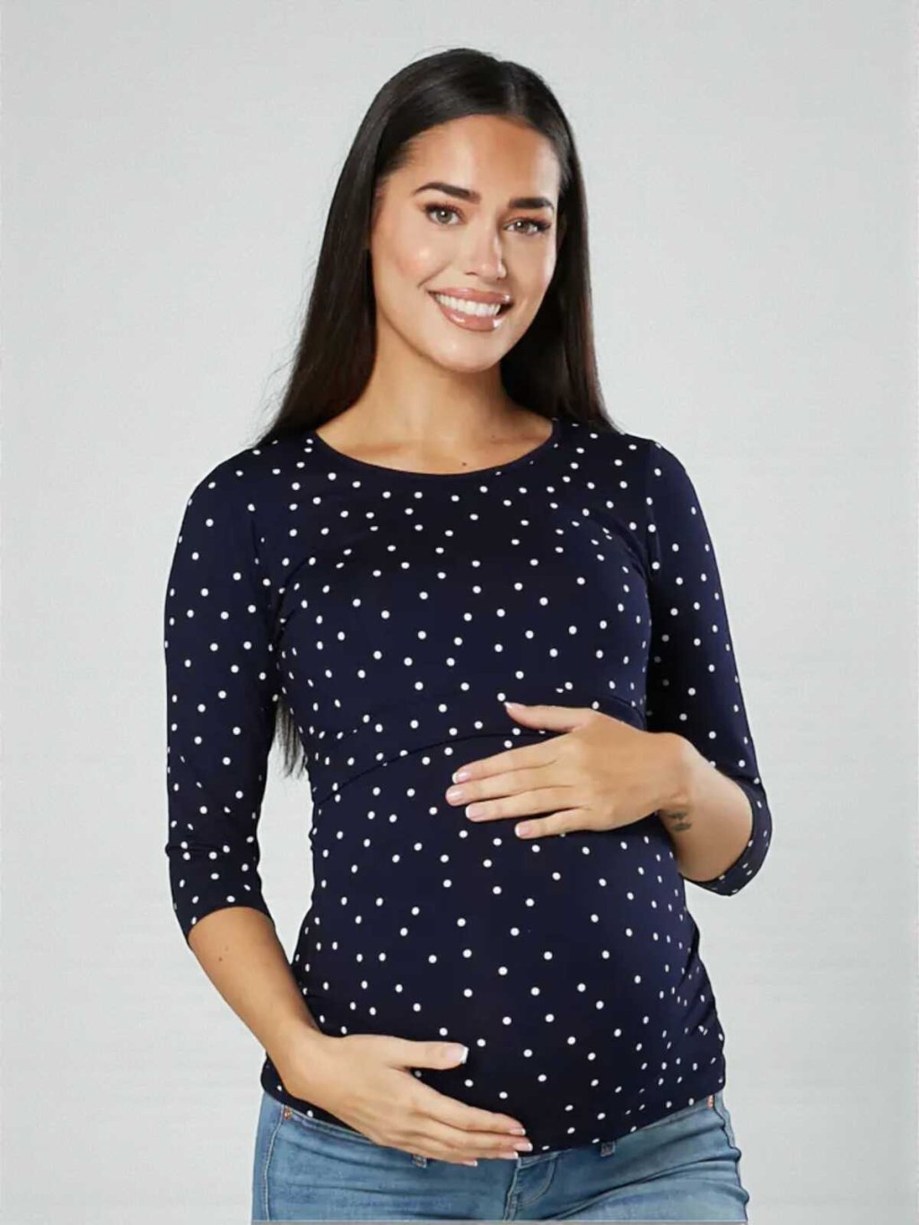 Těhotenské a kojicí tričko 3v1 - tmavě modré s puntíky, 3/4 rukáv