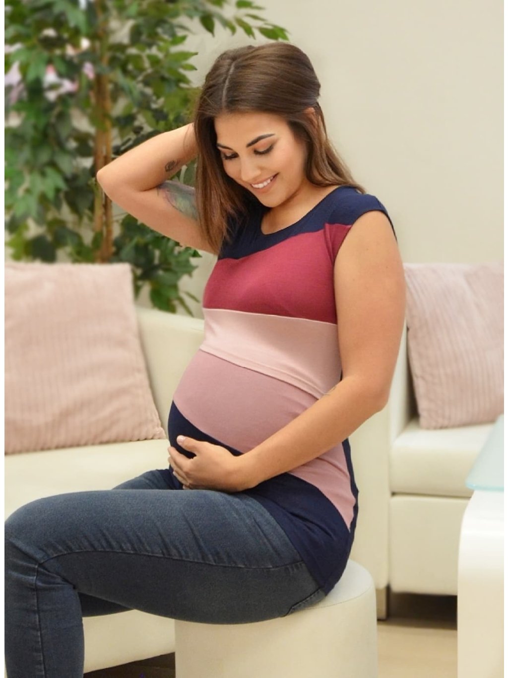 Těhotenské a kojící tričko bez rukávů 3v1 Lamis modro růžové bordó