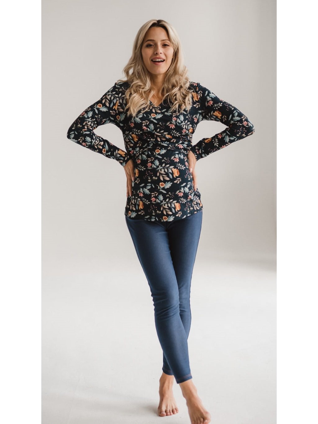 Těhotenské a kojicí tričko Milk Bar – tmavě modré, barevný vzor, dlouhý rukáv