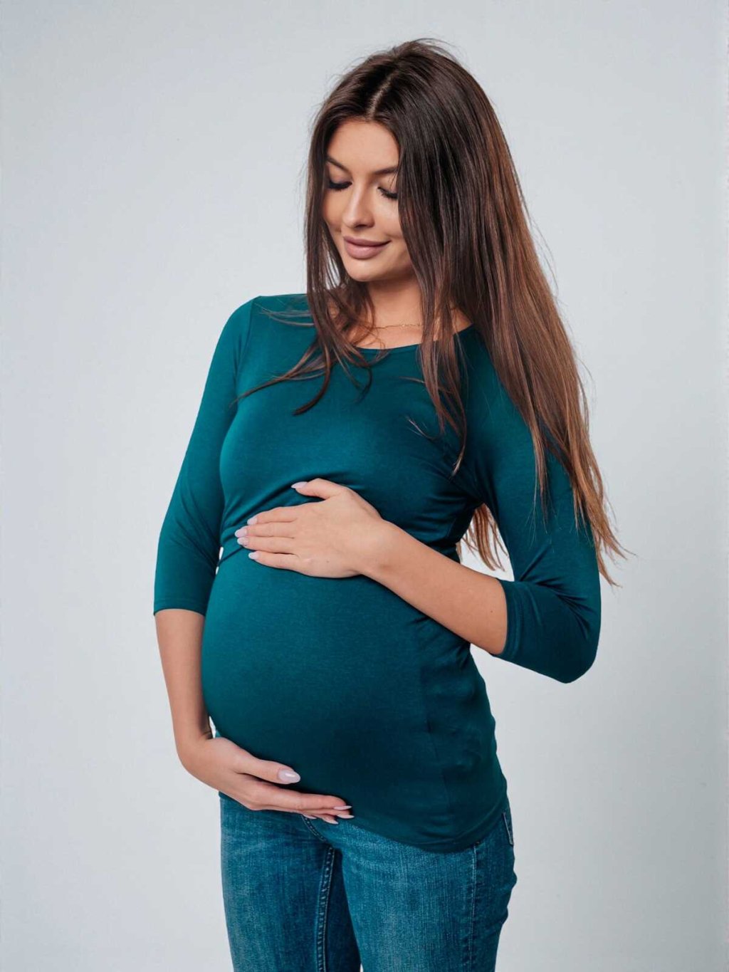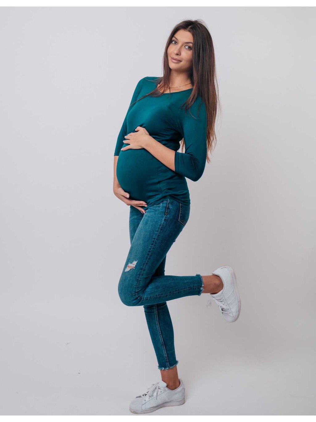 Stylové těhotenské tričko 3v1 – smaragdové s 3/4 rukávem