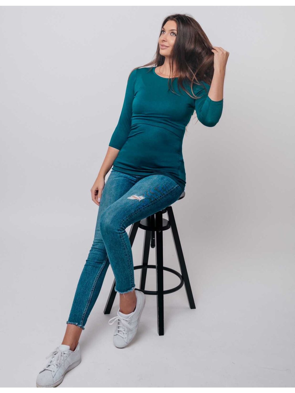 Těhotenské a kojicí tričko 3v1 - smaragdové, 3/4 rukáv