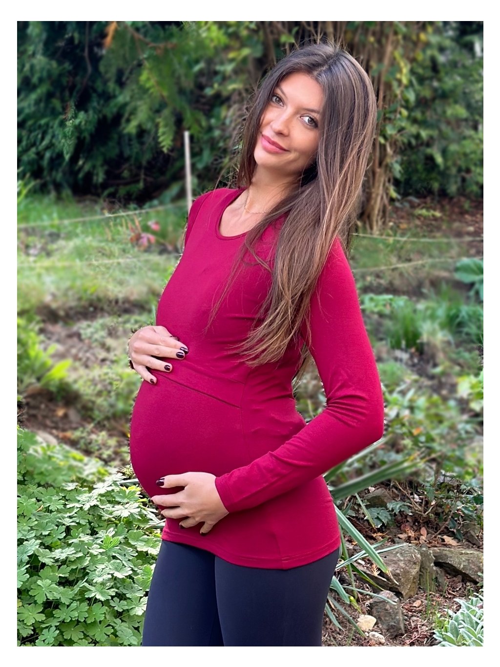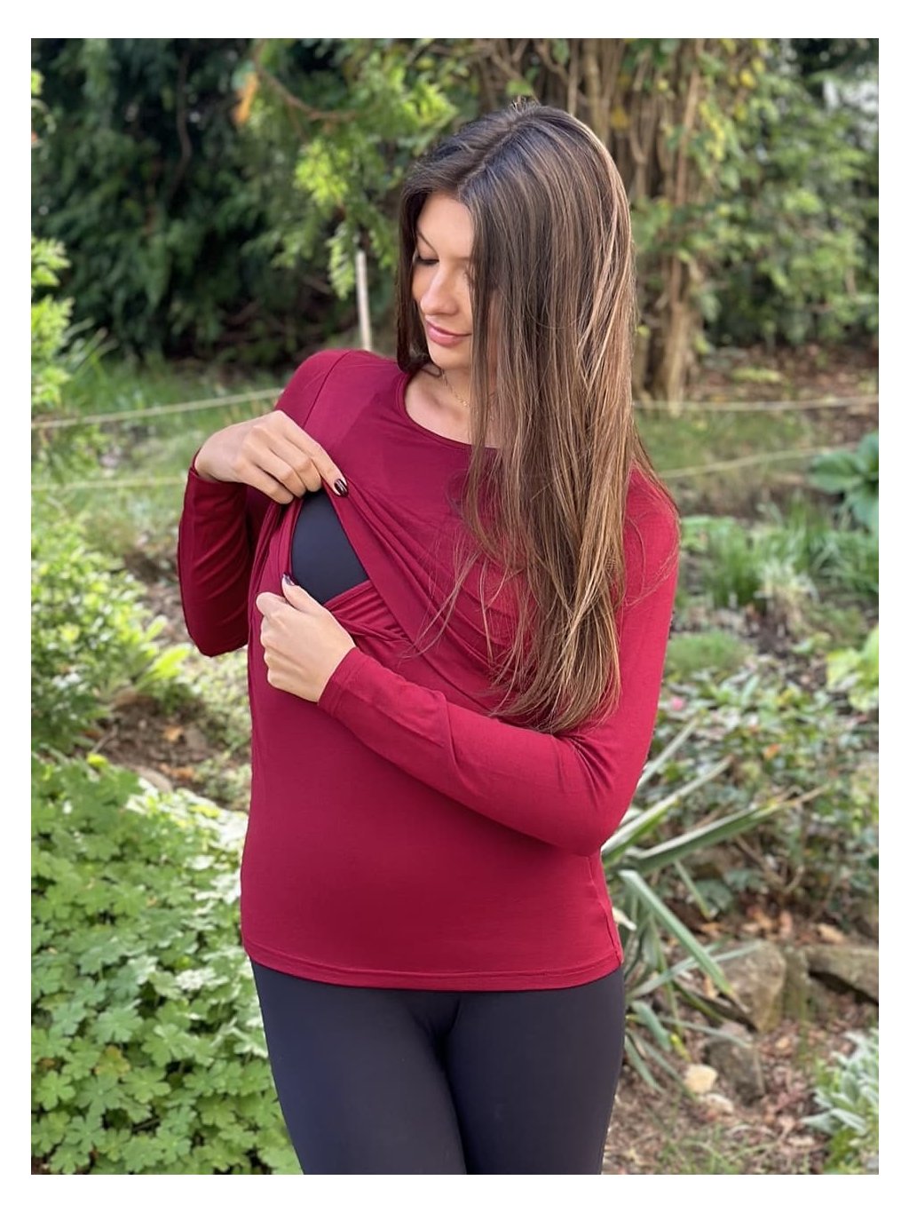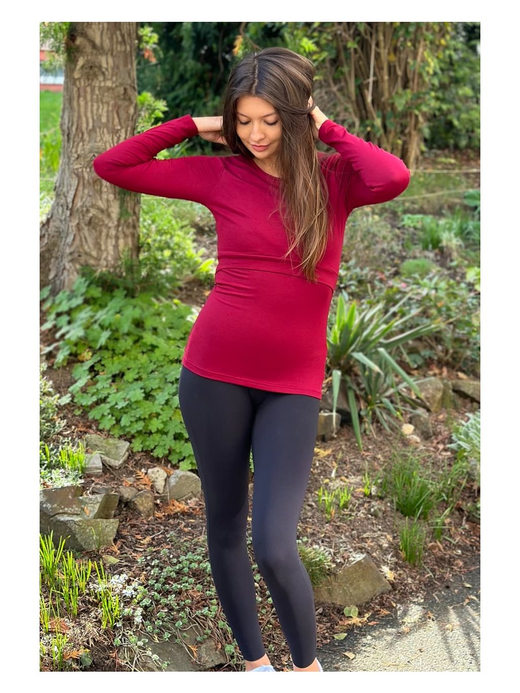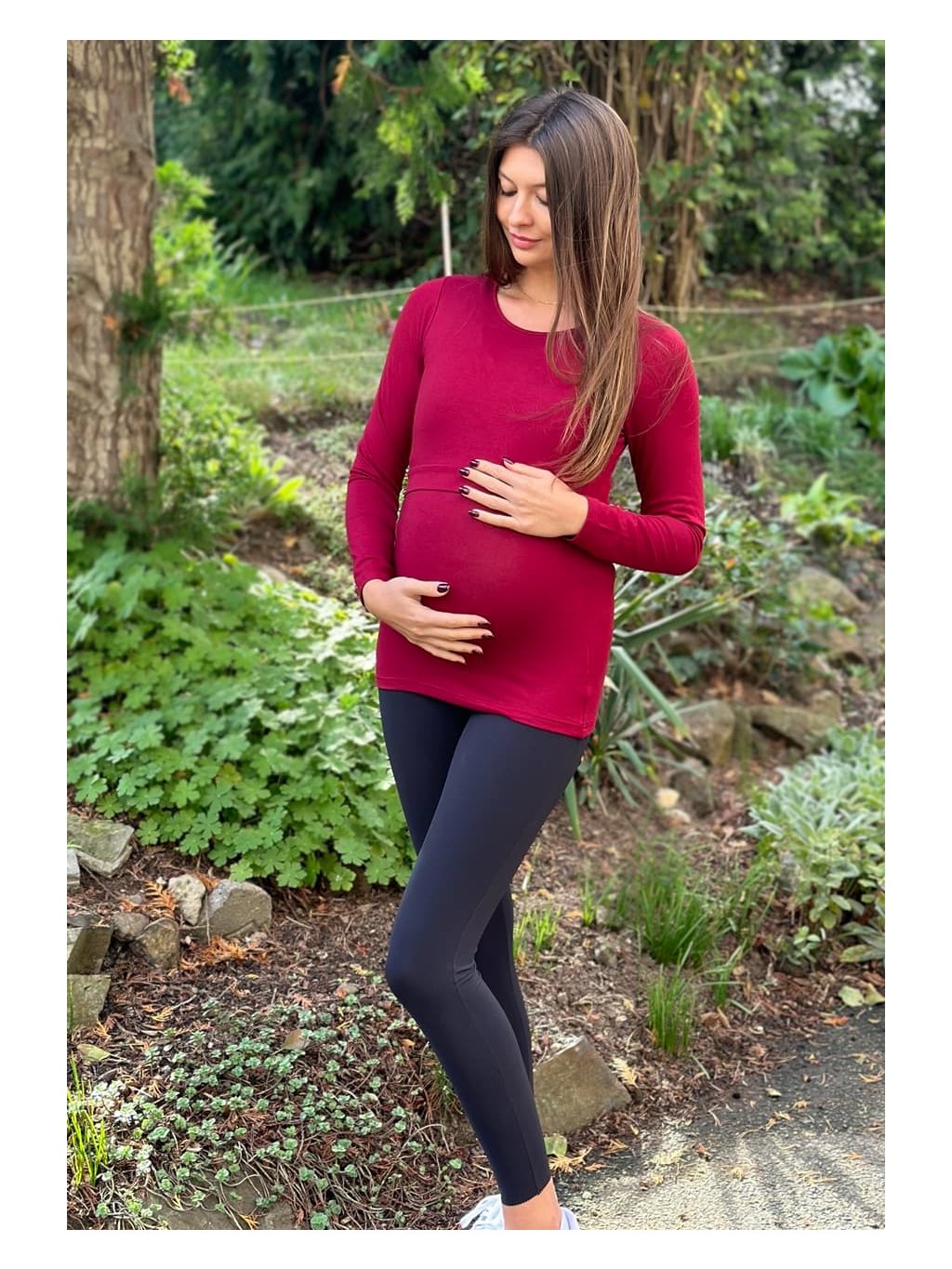 Těhotenské a kojící tričko s dlouhým rukávem 3v1 bordó