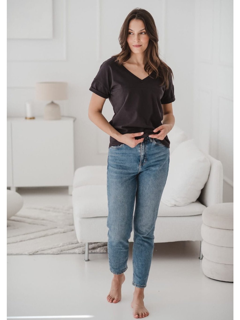 Těhotenské a kojící tričko se zipem M-shirt černé bavlněné