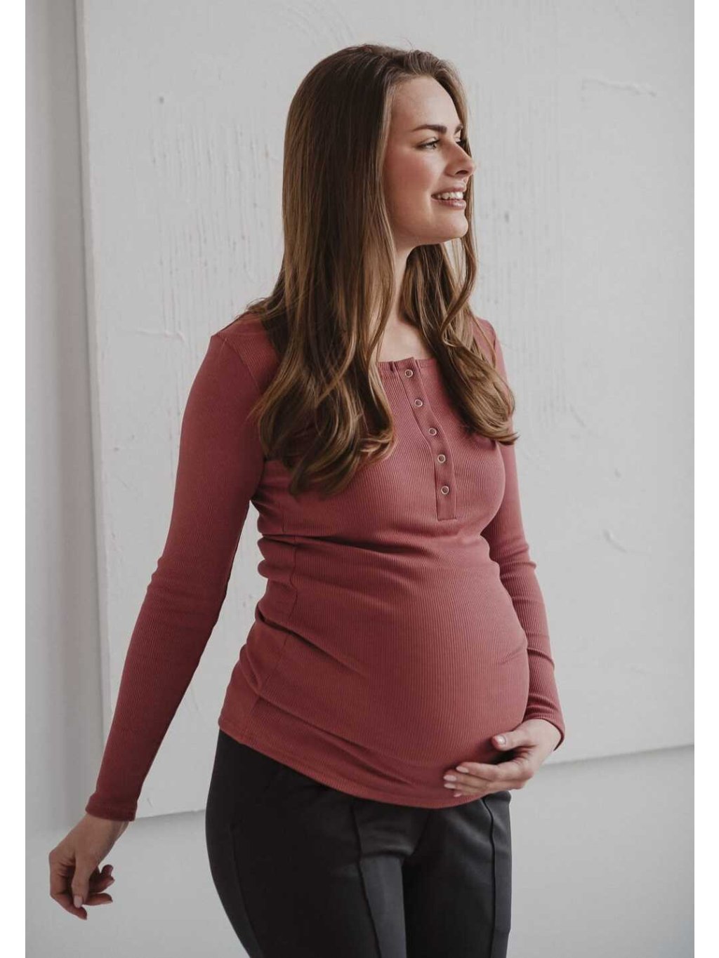 Těhotenské a kojicí tričko Tummy – Dusty Cedar, dlouhý rukáv, žebrovaná bavlna