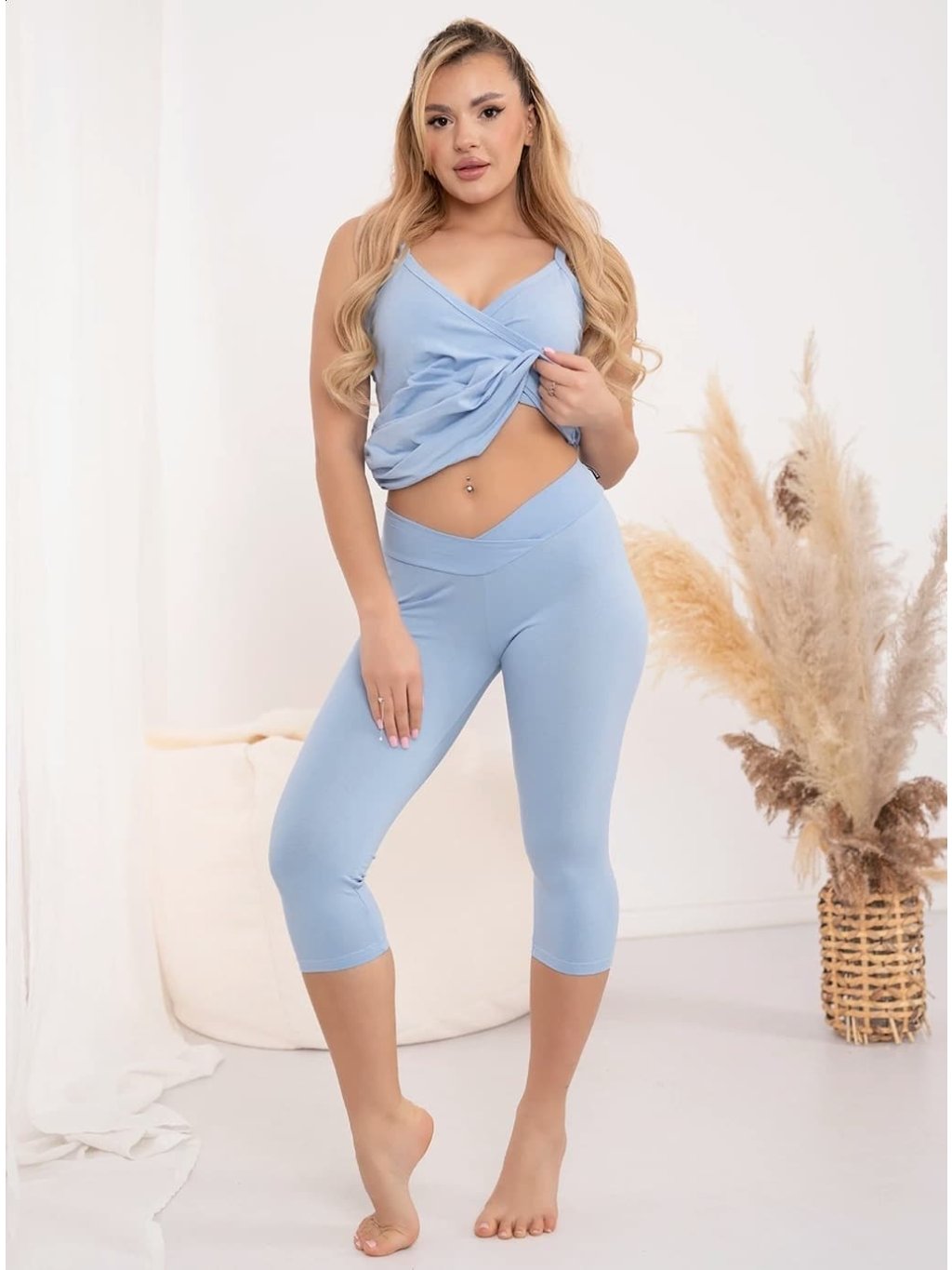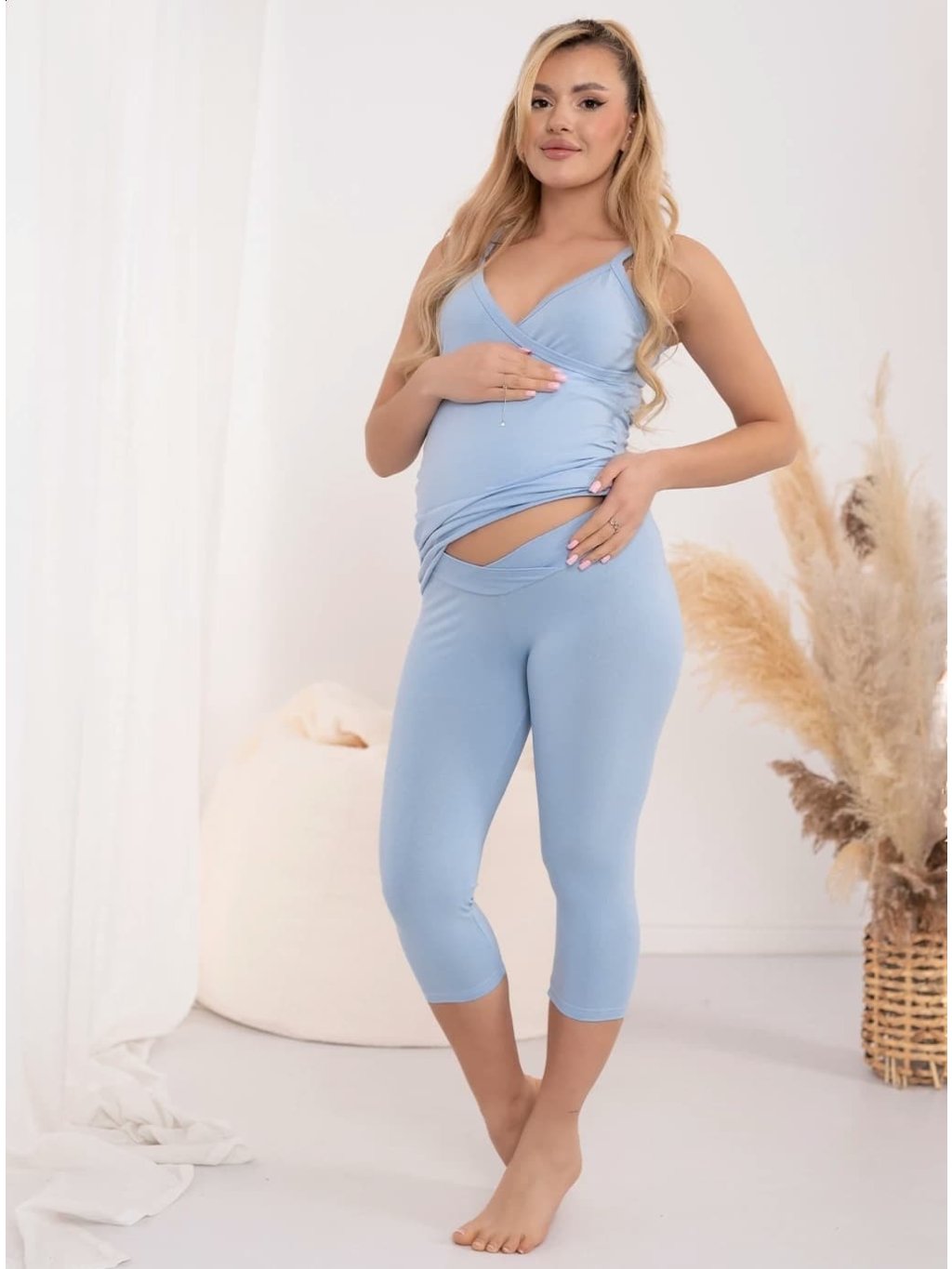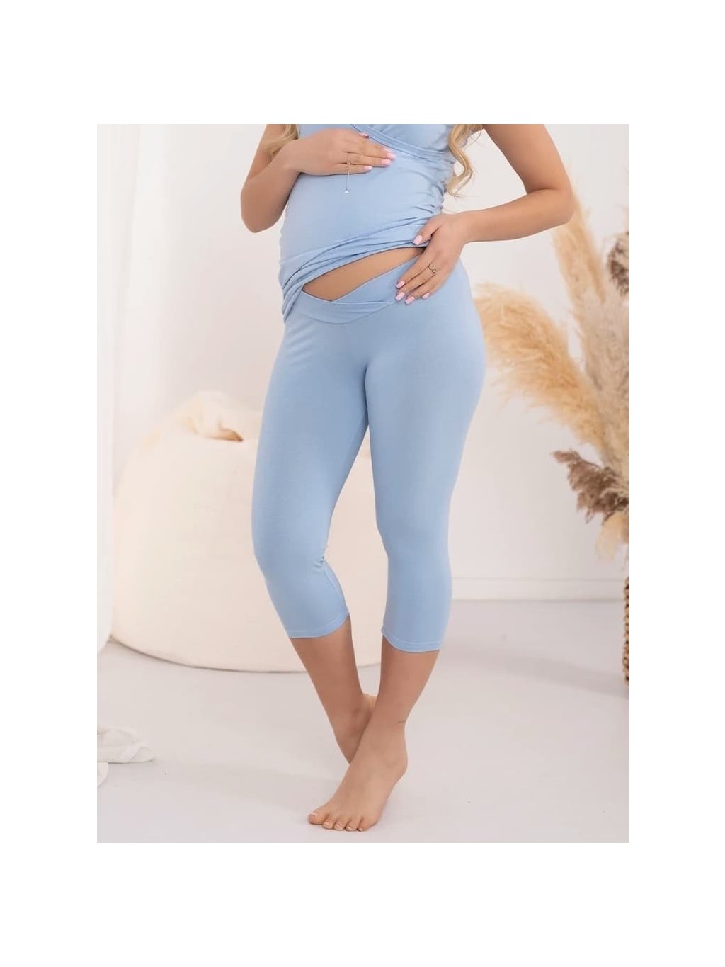 Těhotenské capri legíny s nízkým pasem světle modré bavlněné
