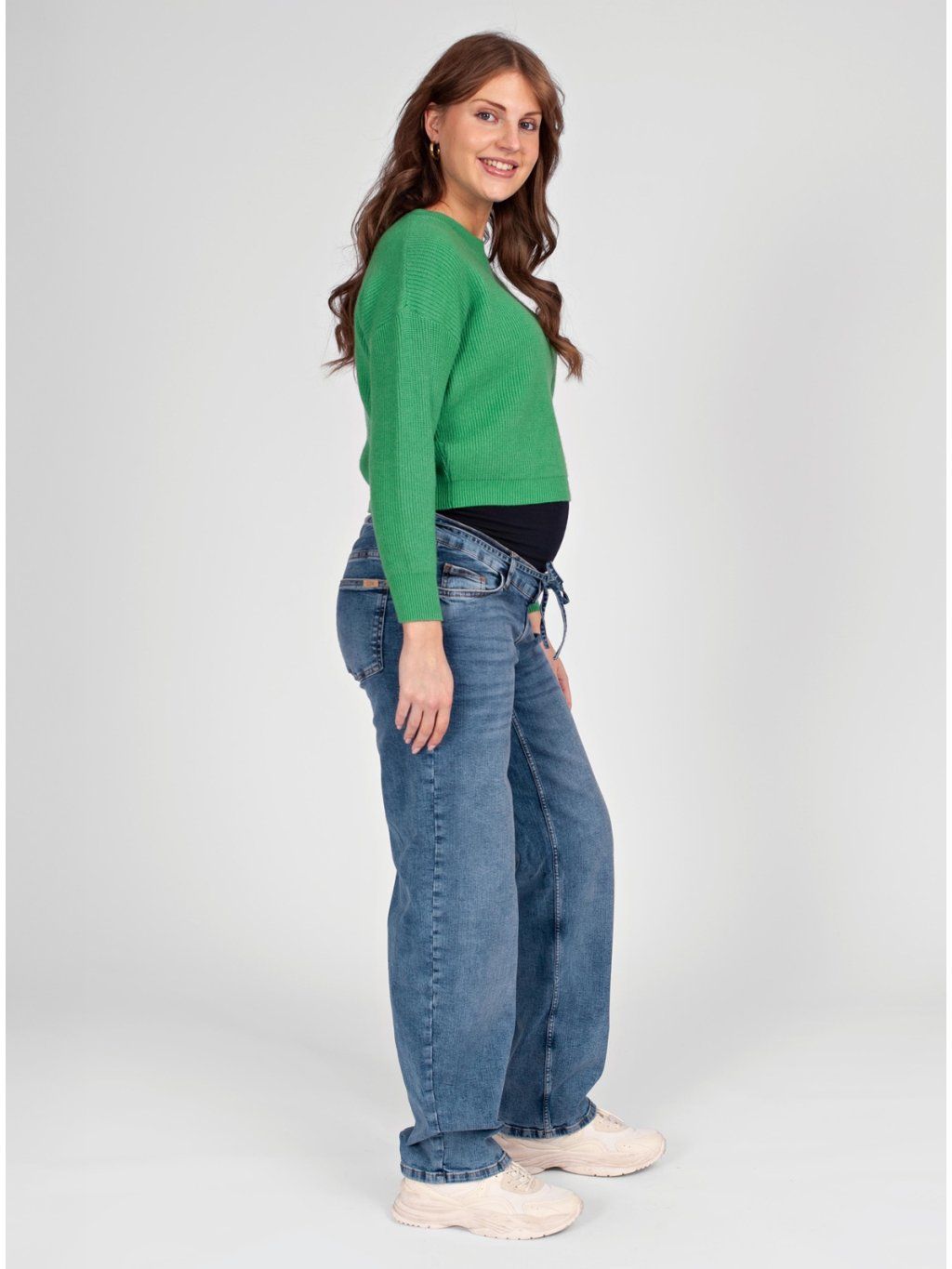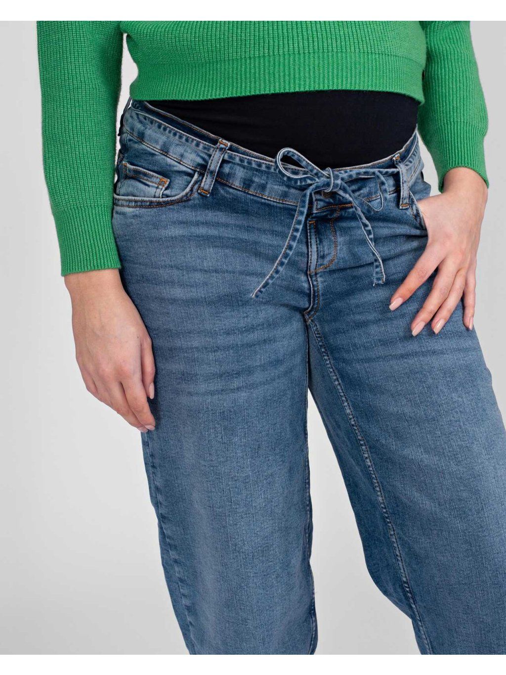 Těhotenské džíny Kate – Tapered střih, modré stone wash, bavlna, superstreč.