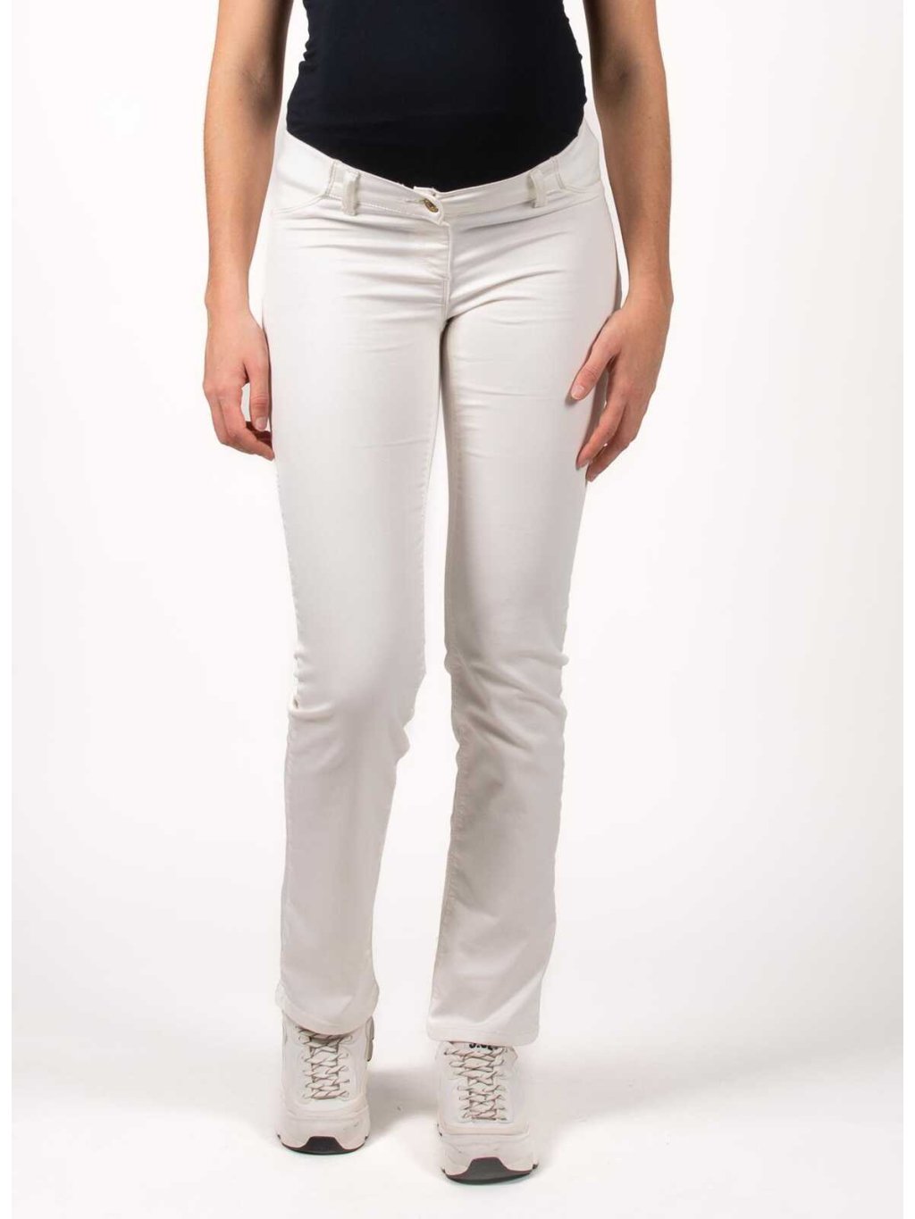 Těhotenské kalhoty Underbump – bílé ecru, bez břišního pasu