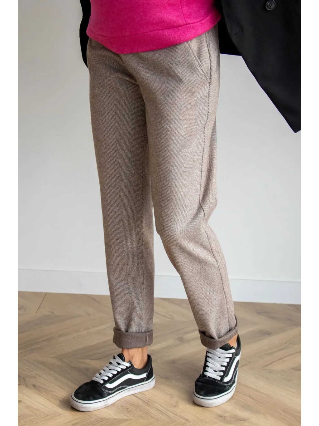 Těhotenské kalhoty z hřejivější látky – světle hnědé melange, vlna
