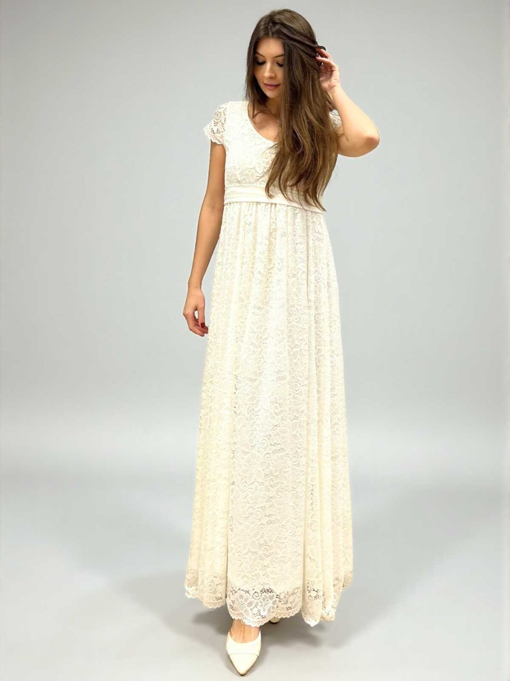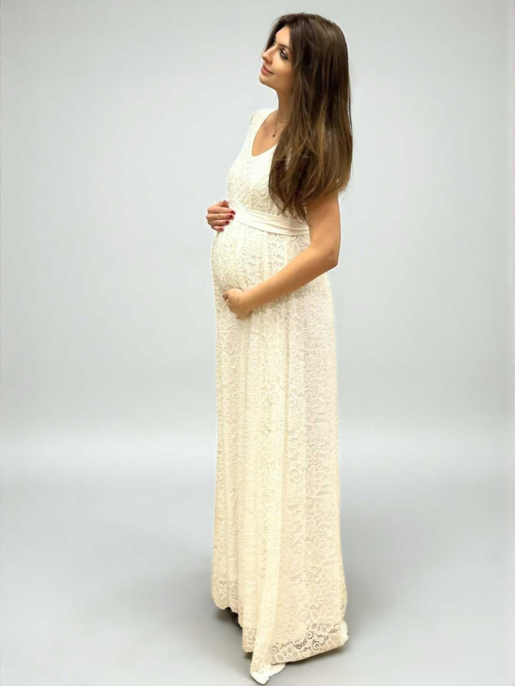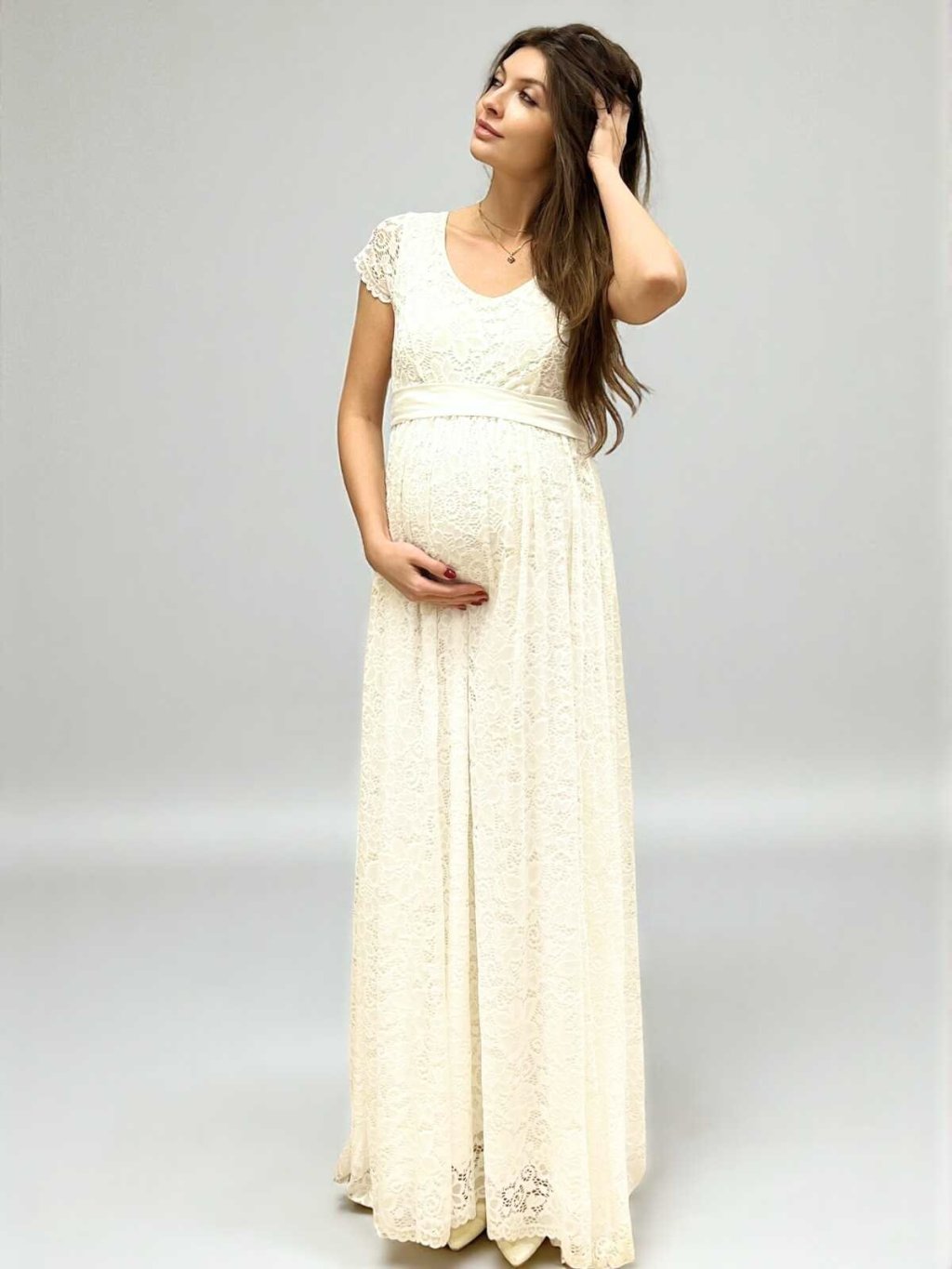 Těhotenské svatební šaty Aurelia - smetanově bílé, krajkové