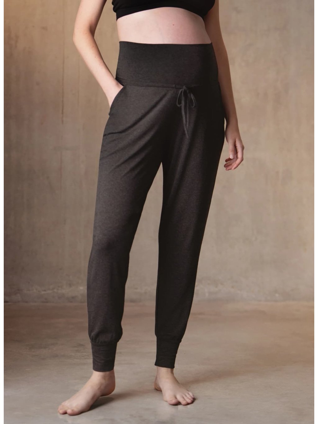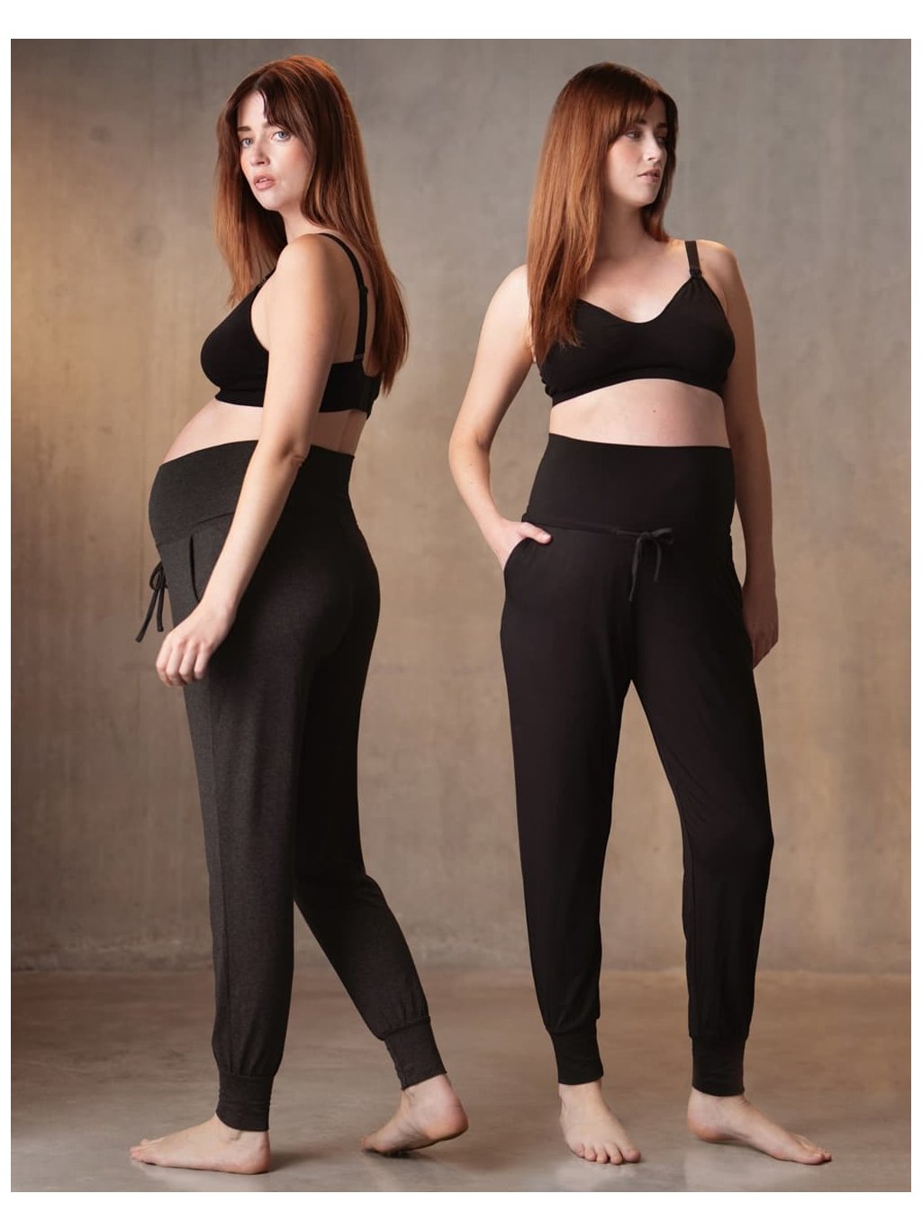 Perfektní těhotenské tepláky, které se dají se nosit třemi způsoby: Můžete jej nosit na, nebo pod těhotenským bříškem a díky stahovací šňůrce...