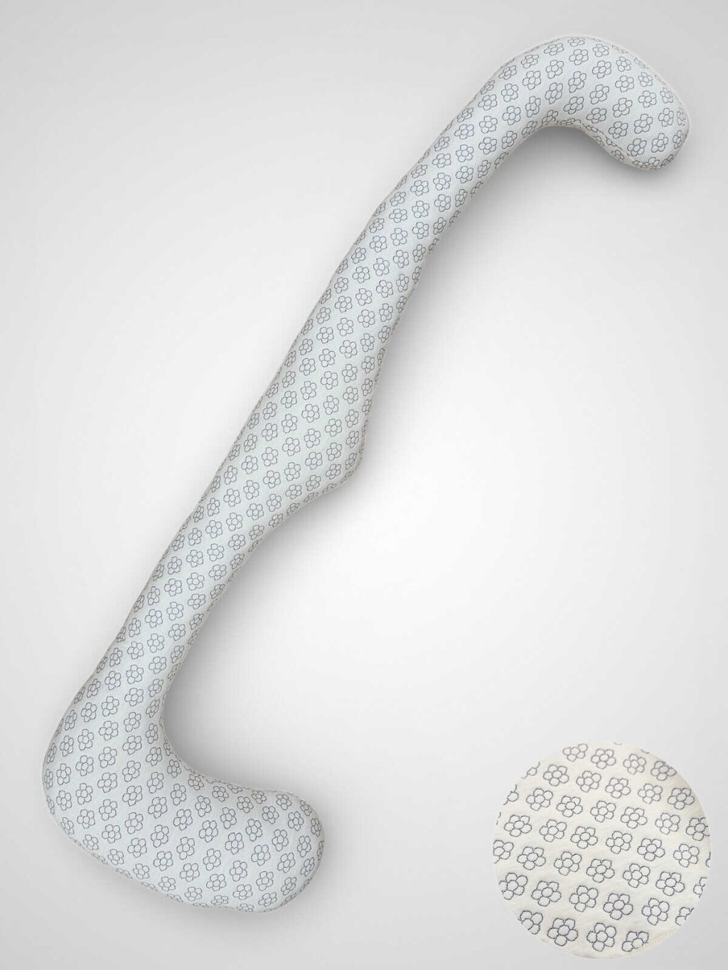 Tento těhotenský a kojicí polštář v ecru odstínu se šedými kvítky je navržen tak, aby poskytoval pohodlí během celého těhotenství i při kojení. Ergonomický tvar „E“ se přirozeně přizpůsobí tělu, ulevuje napětí a pomáhá najít stabilní polohu při spaní na boku.