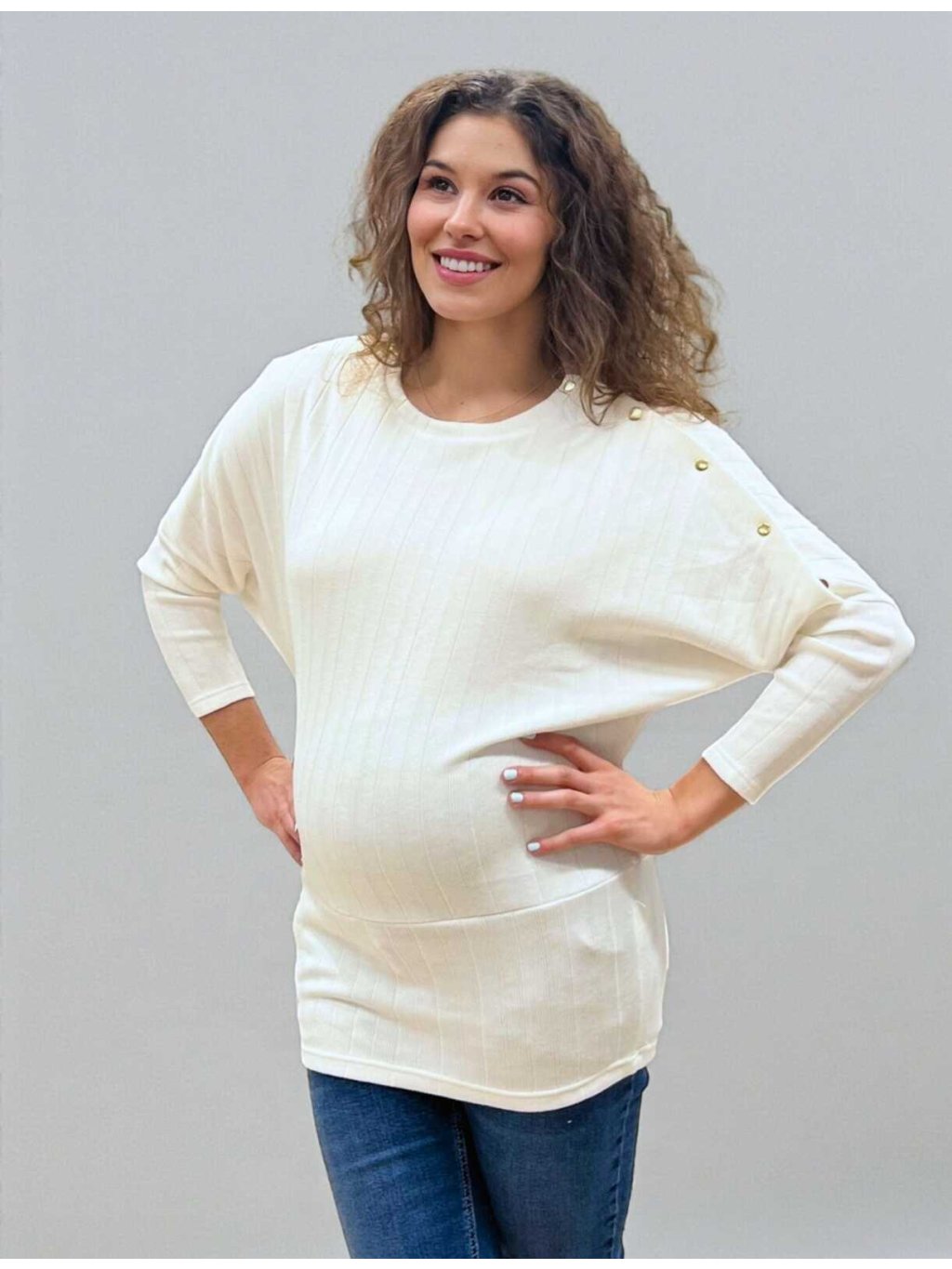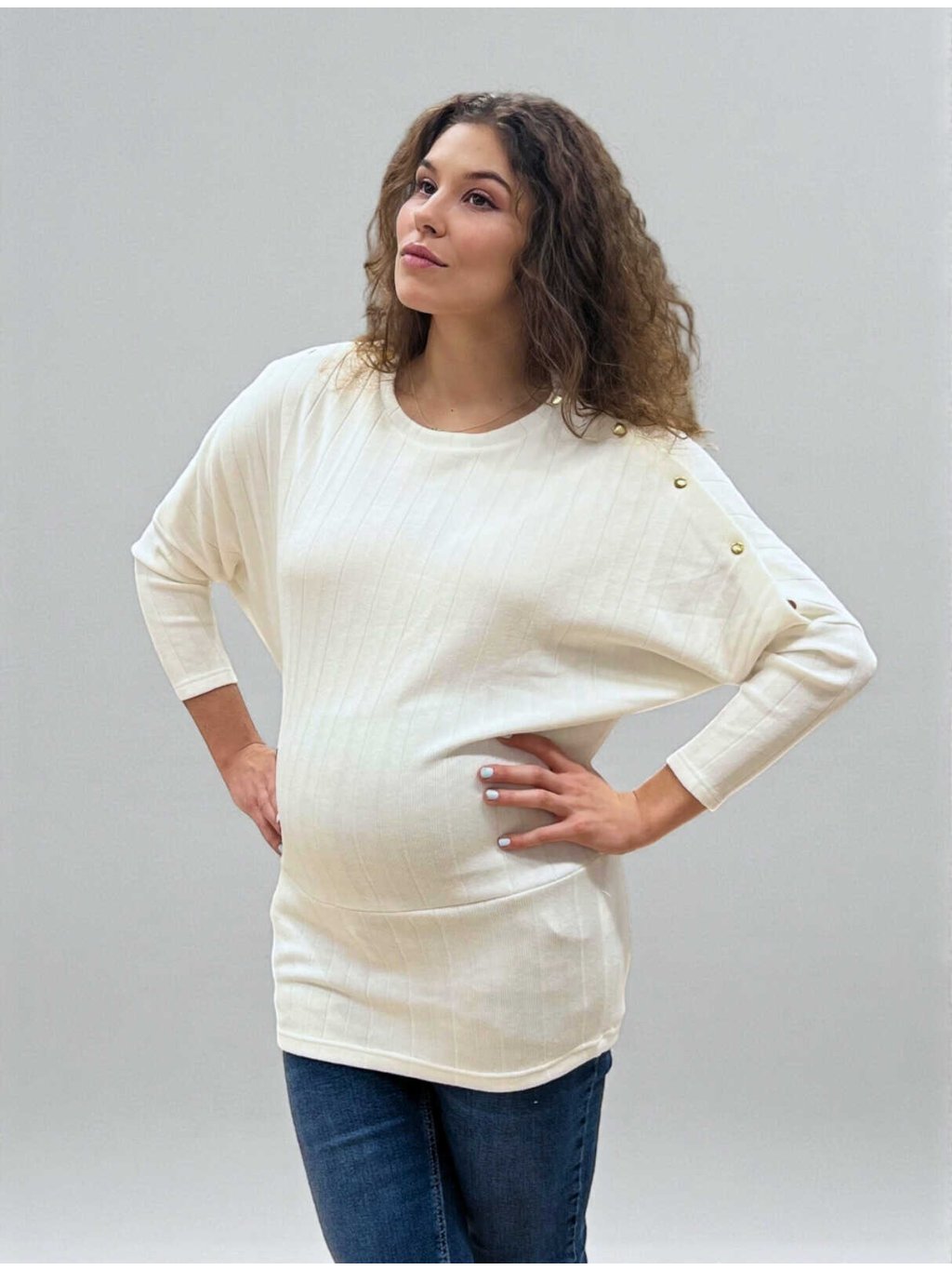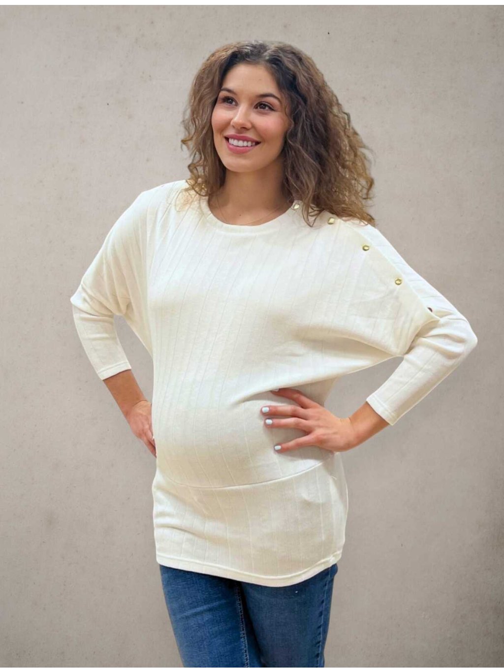 Těhotenský a kojicí svetr Jamila - bílý ecru, 7/8 rukáv