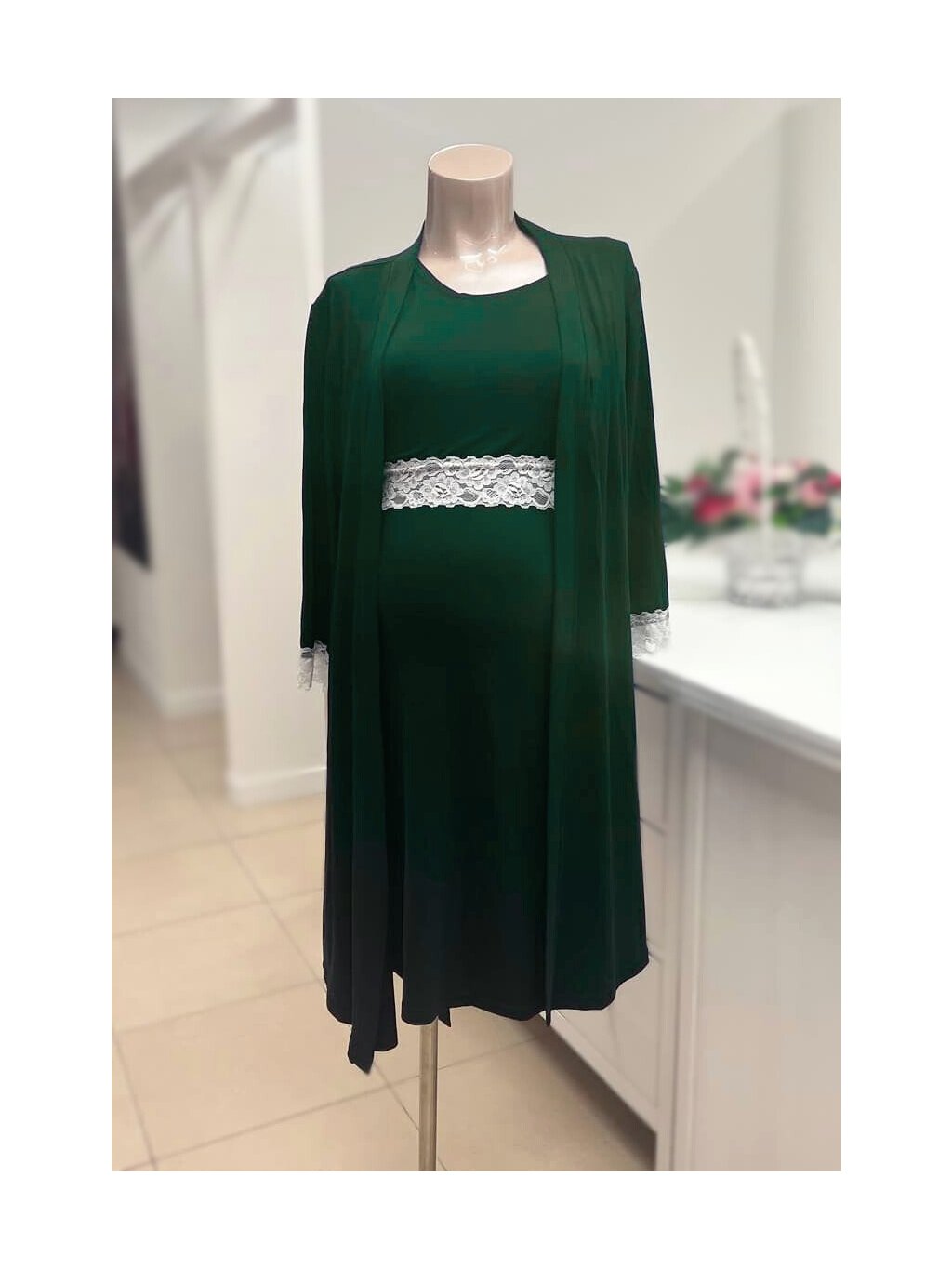 Těhotenský set tmavě zelený (těhotenská - kojící noční košilka + župánek)