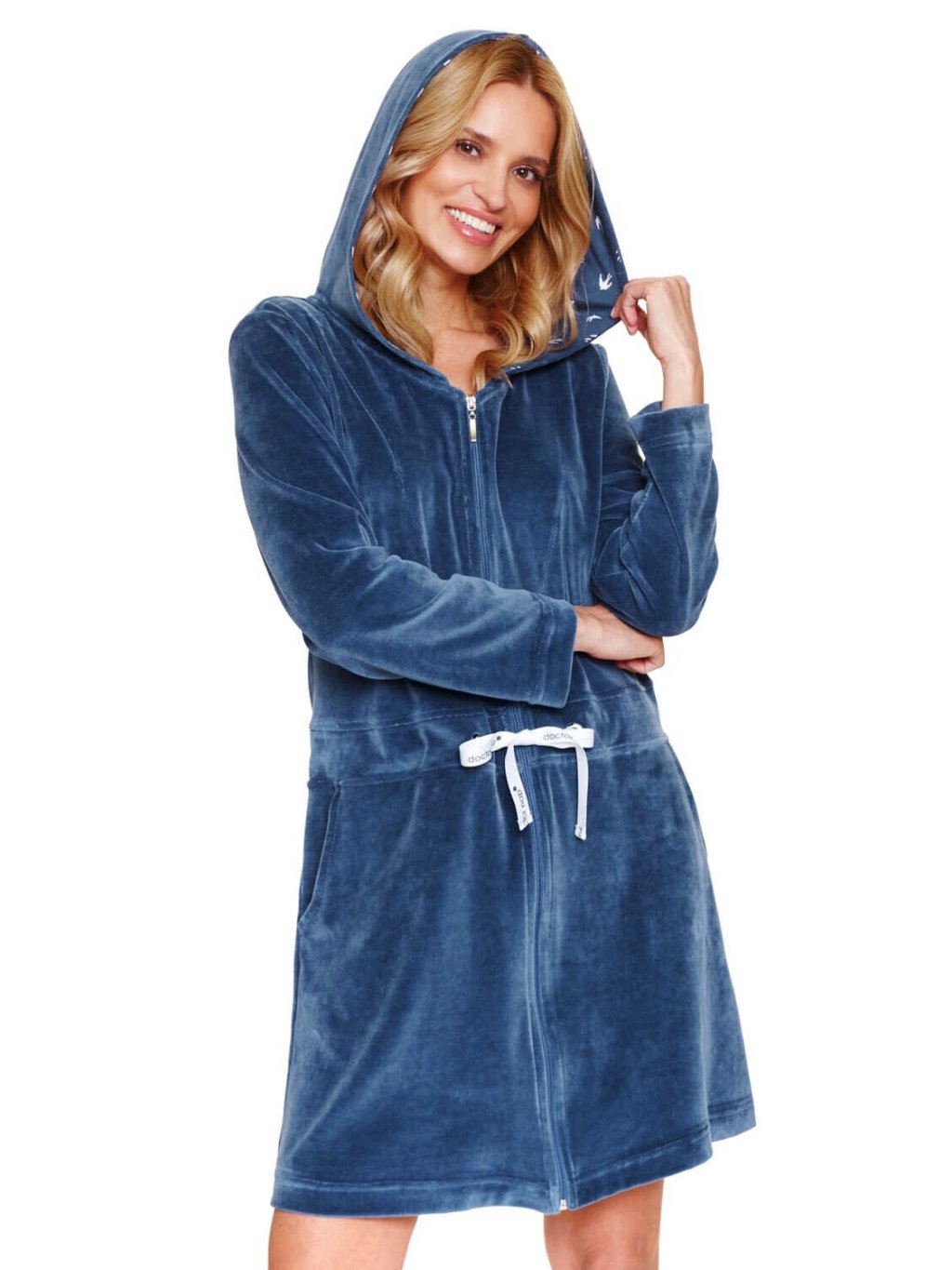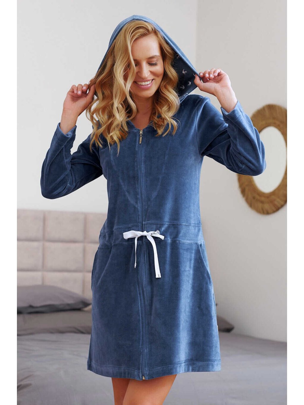 Těhotenský župan s kapsami Velvet - modrý Mist