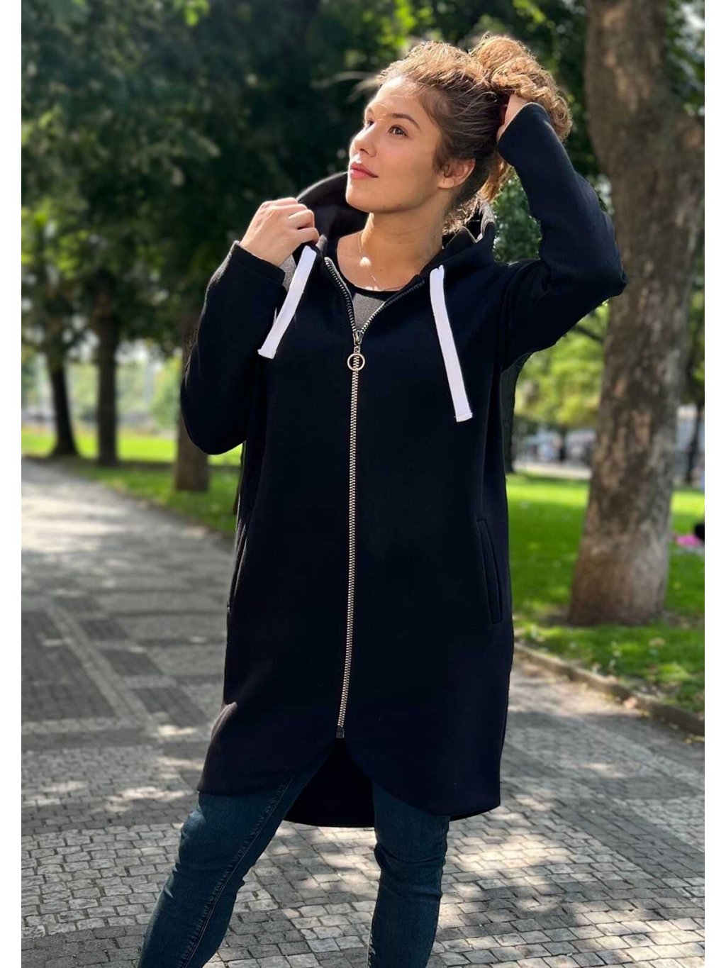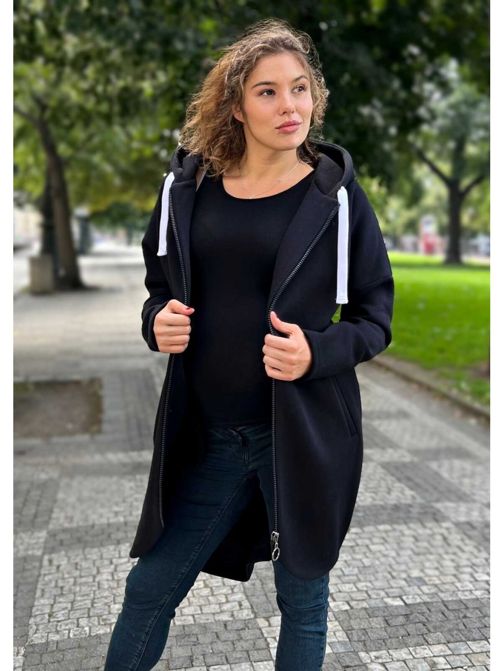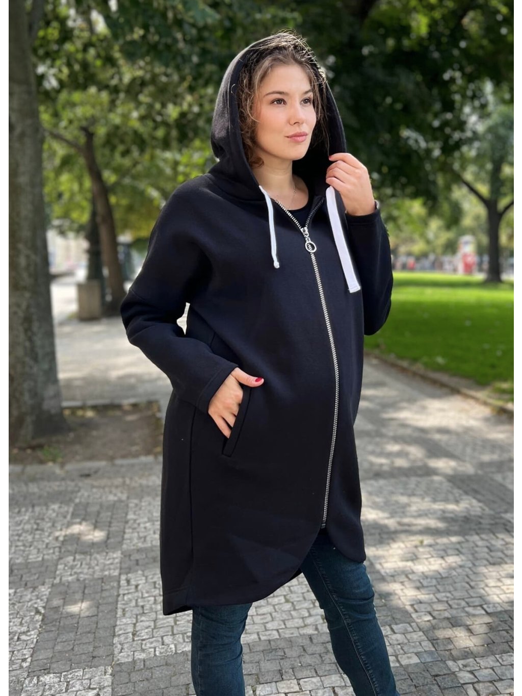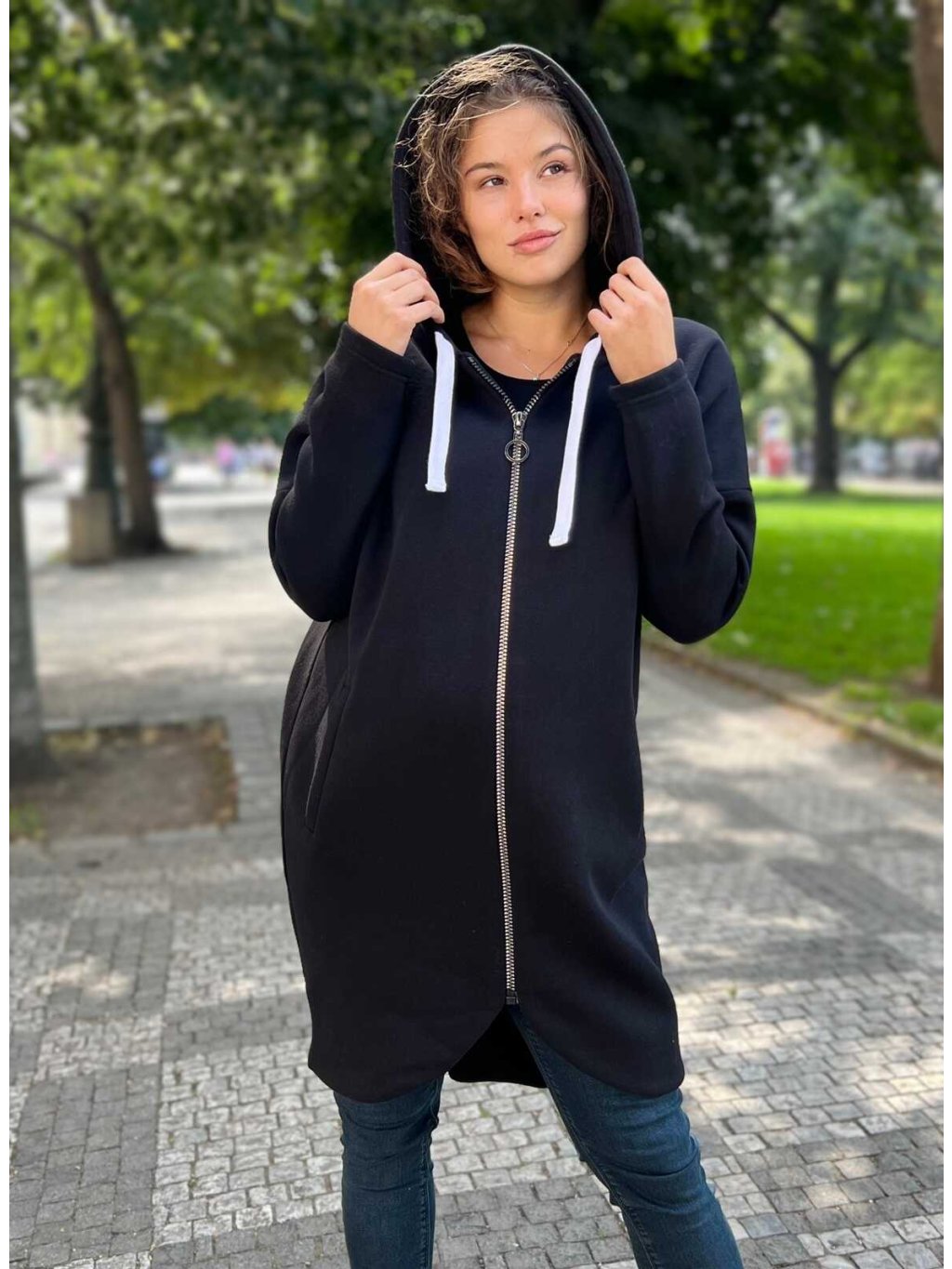 Teplá prodloužená těhotenská mikina Paris – oversize střih, černá