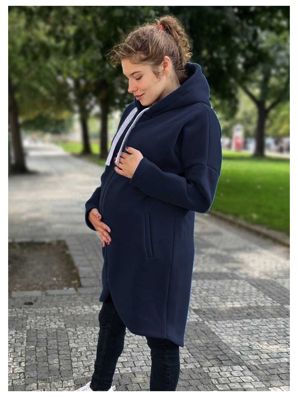 Teplá prodloužená těhotenská mikina Paris – tmavě modrá, oversize střih, bavlněná