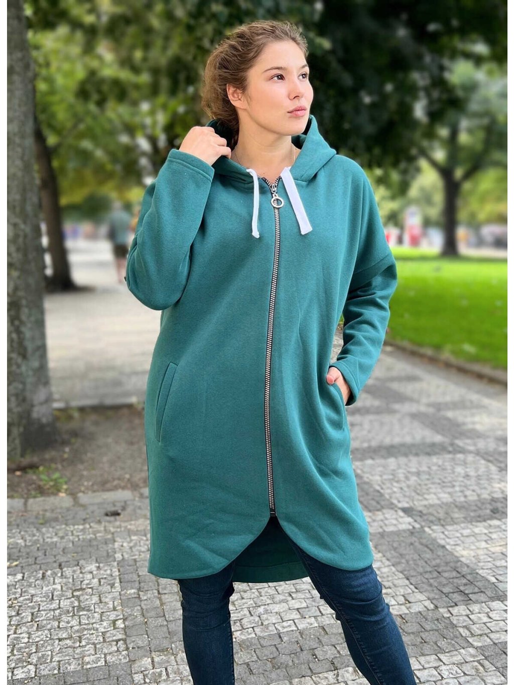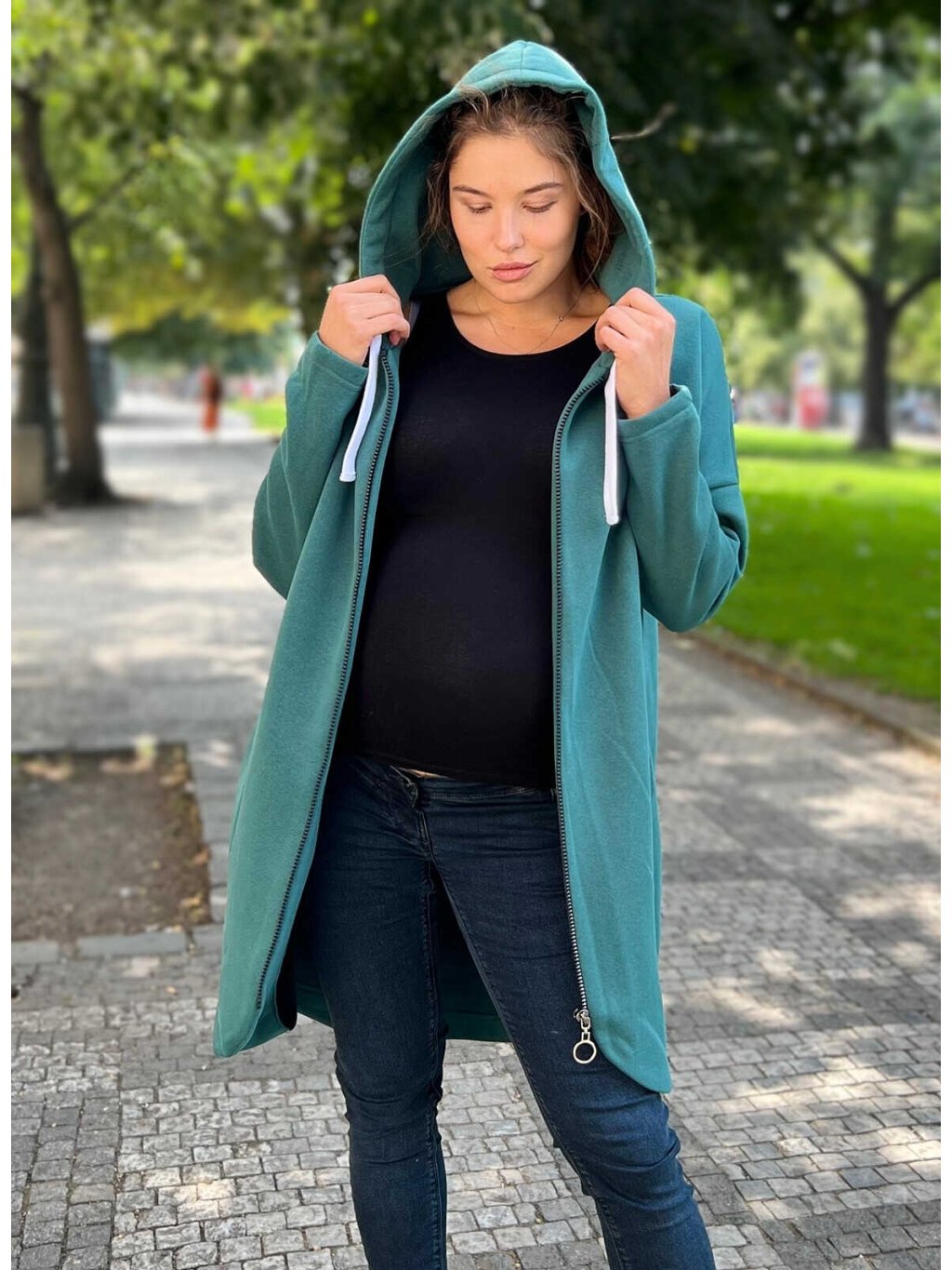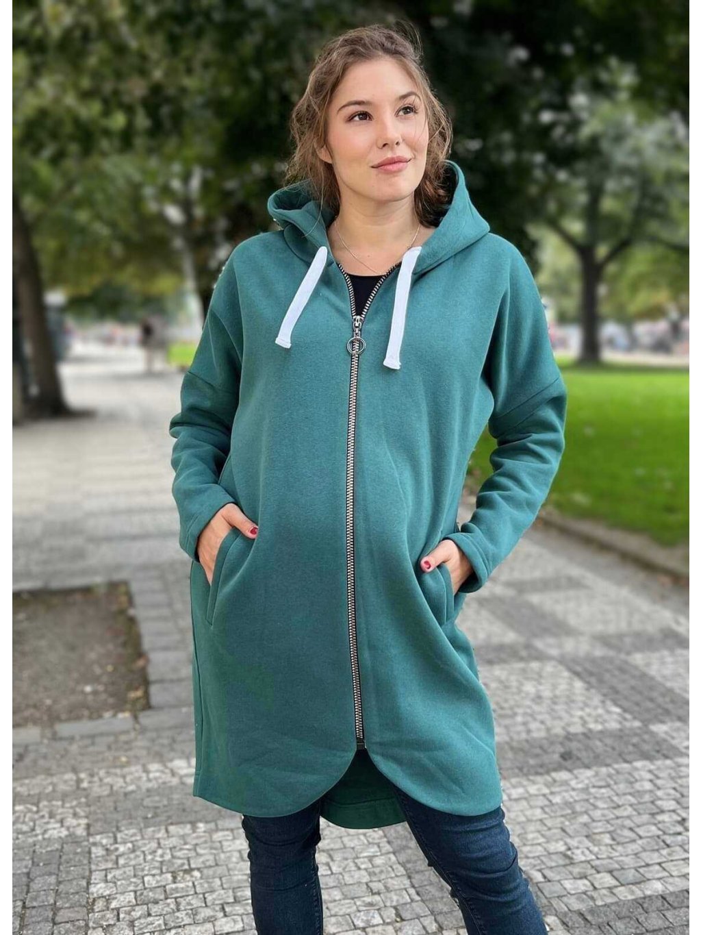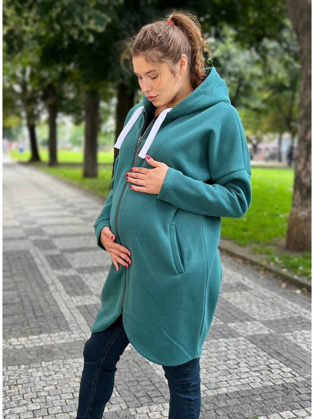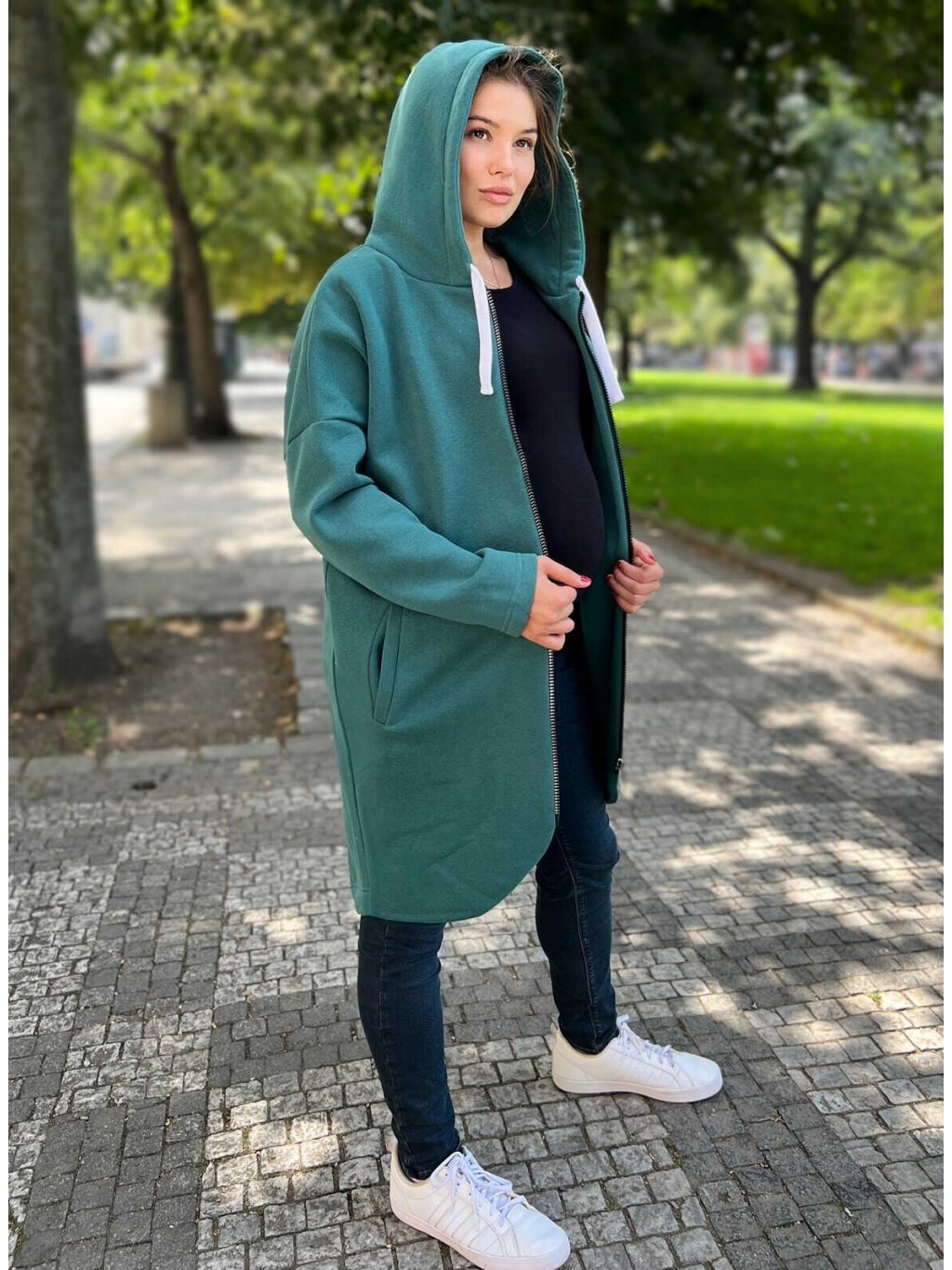 Teplá prodloužená těhotenská mikina Paris – oversize střih, zelená mořská