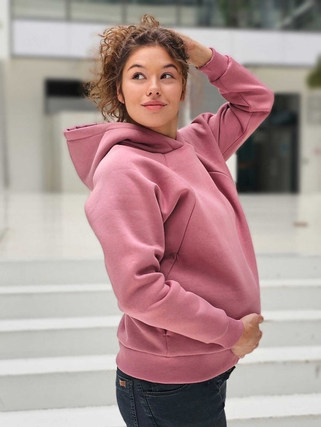 Teplá těhotenská a kojicí mikina Warm-Mama 3v1 - starorůžová, bavlněná