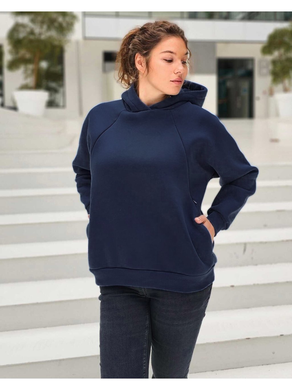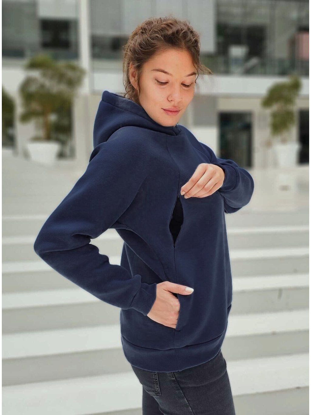 Teplá těhotenská a kojicí mikina Warm-Mama 3v1 - tmavě modrá, bavlněná