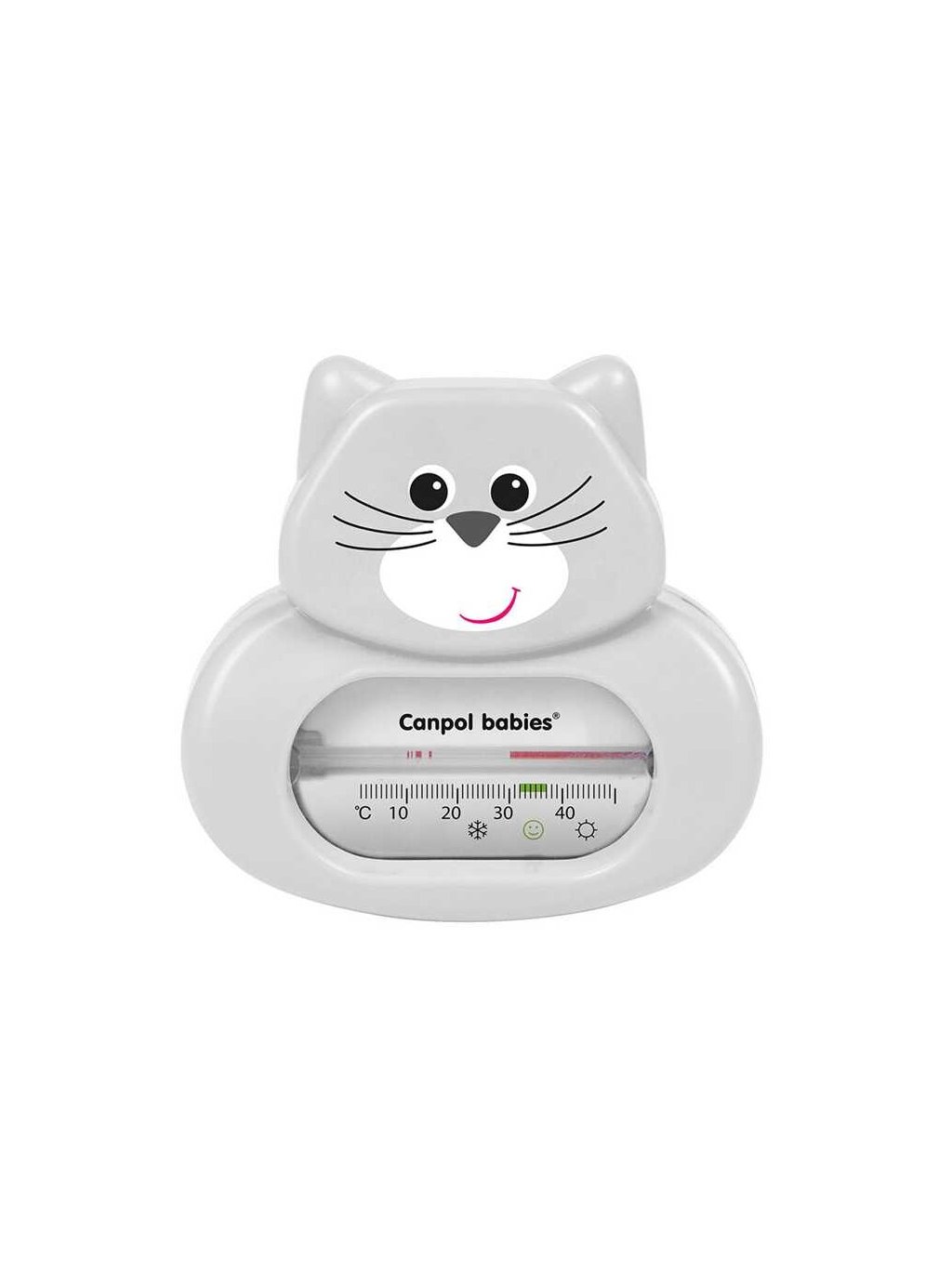 Koupací teploměr slouží ke kontrole teploty vody připravované koupací lázně malého dítěte. Je přesný, spolehlivý s dobře čitelnou stupnicí. K měření teploty se používá obarvený alkohol/petrolej - podle šarže výrobku. Trubička teploměru je bezpečně zapuštěna v těle teploměru tak, aby se k ní dítě nedostalo. Upozornění! Doporučená teplota koupací lázně malého dítěte se pohybuje mezi 32 - 37°C a je na teploměru označena symbolem smějící se tváře. Teplota označená sněhovou vločkou je příliš nízká a teplota označená sluníčkem příliš vysoká.