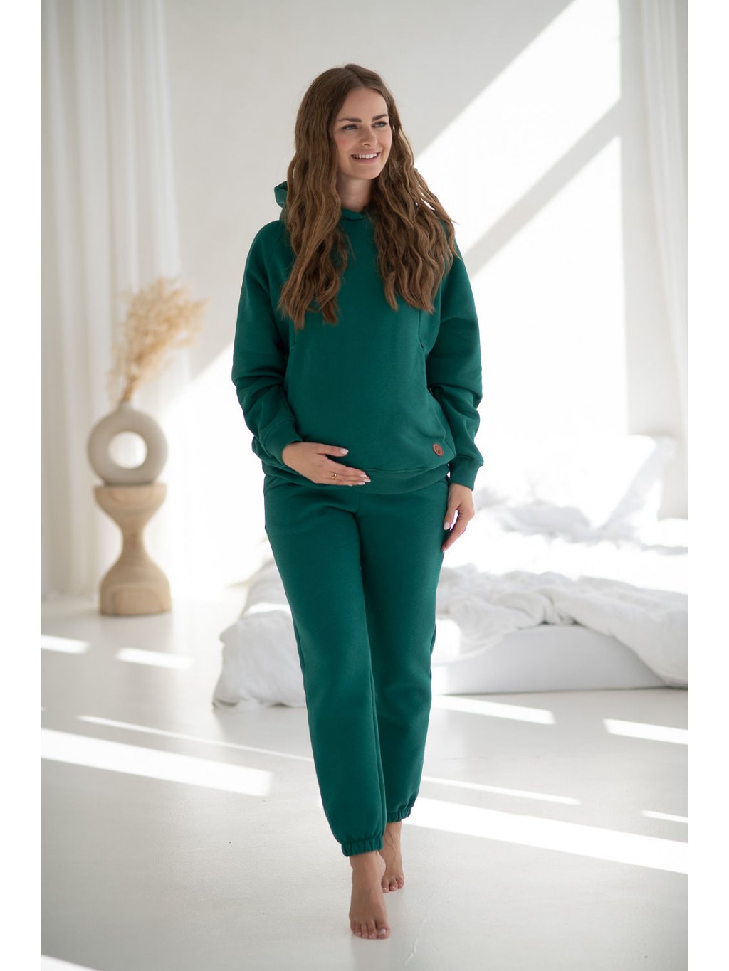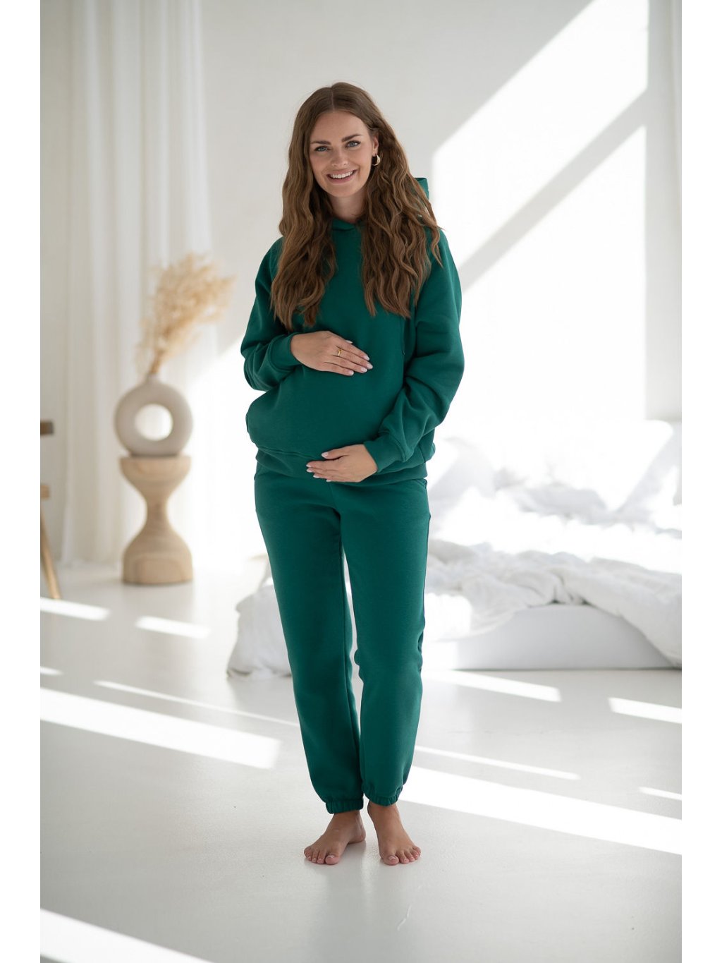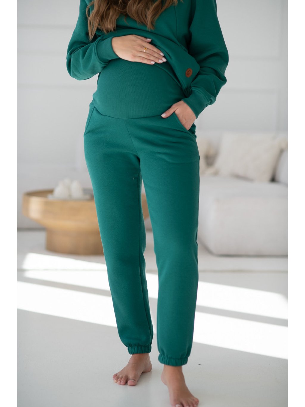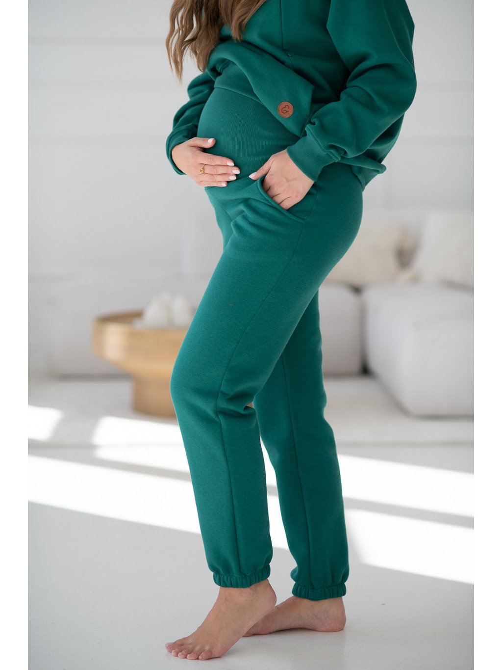 Zateplené těhotenské tepláky Motherhood - láhvově zelené, bavlna